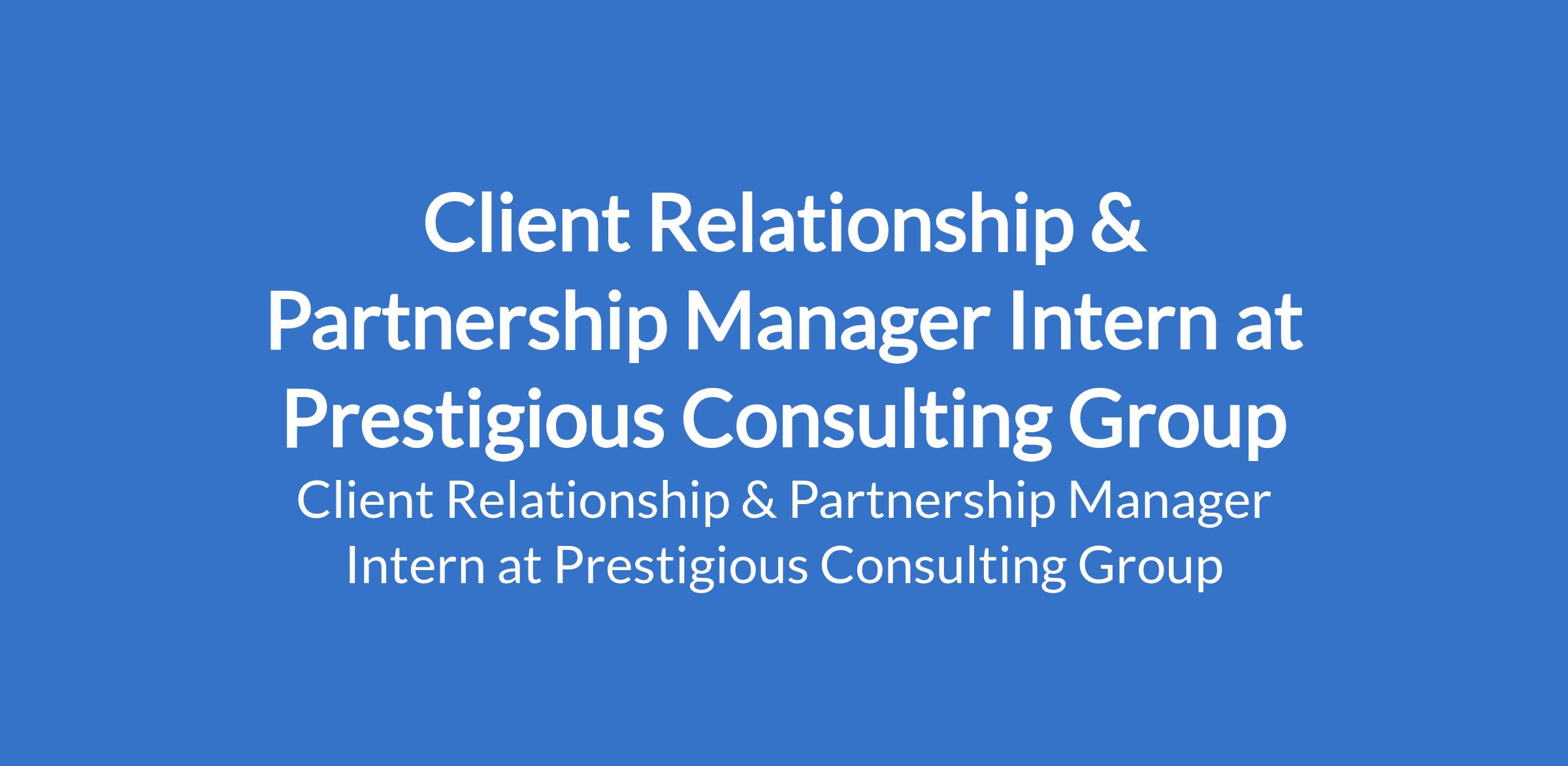 Prestigious Consulting Group is recruiting to fill the position of: Client Relationship & Partnership Manager Intern. The position is located in Lagos State. This is a Remote Position. Salary: N70,000 - N100,000 per month. Interested candidates should possess a Bachelors Degree (or recent graduate) in Business, Economics, Marketing, Finance, or related field with 1 2 years experience.