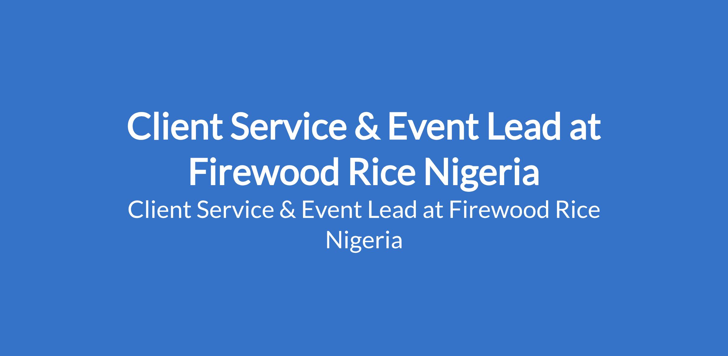 Firewood Rice Nigeria is recruiting to fill the position of: Client Service & Event Lead. The position is located in Lagos State. Salary: N180,000 - N200,000 monthly. Interested candidates should possess a Bachelors Degree or HND in Hospitality Management, Business Administration, Marketing, or related field with a minimum of 3 years experience in client service, event management, catering, or hospitality operations.