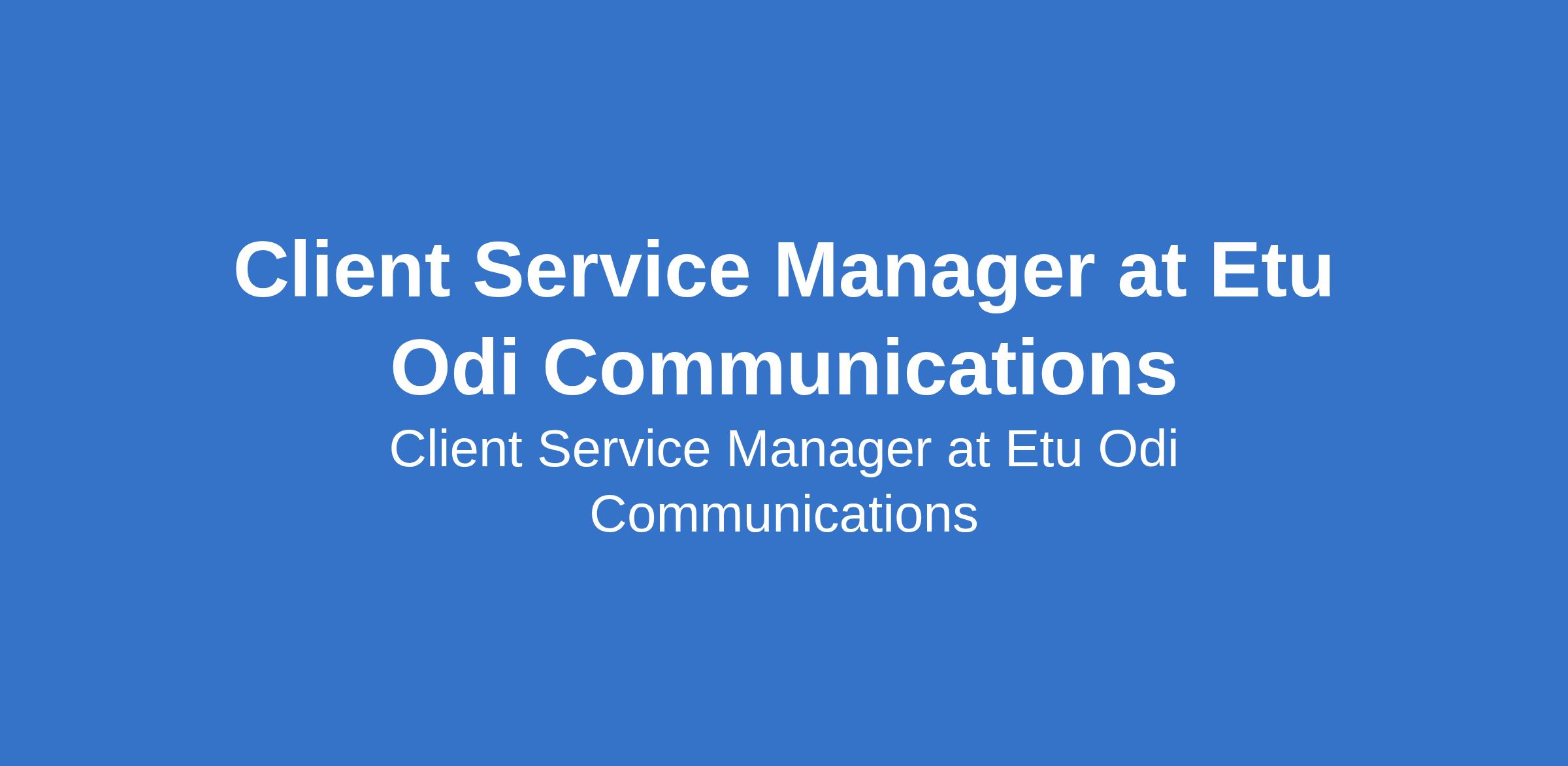 Etu Odi Communications is recruiting to fill the position of: Client Service Manager. The position is located in Lagos State. Interested candidates should possess relevant qualifications.