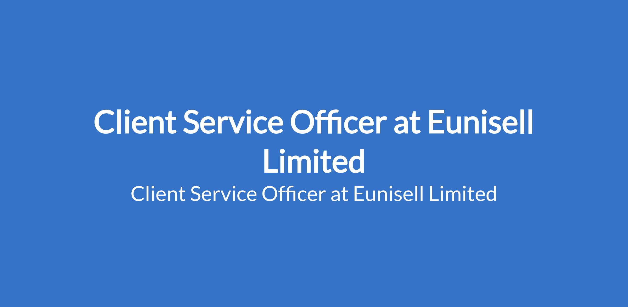 Eunisell Limited is recruiting to fill the position of: Client Service Officer. The position is located in Victoria Island, Lagos State. Interested candidates should possess a Bachelor's Degree or HND in Business Administration, Marketing, or a related field with minimum of 3 years experience in customer service, front desk operations or a related role.
