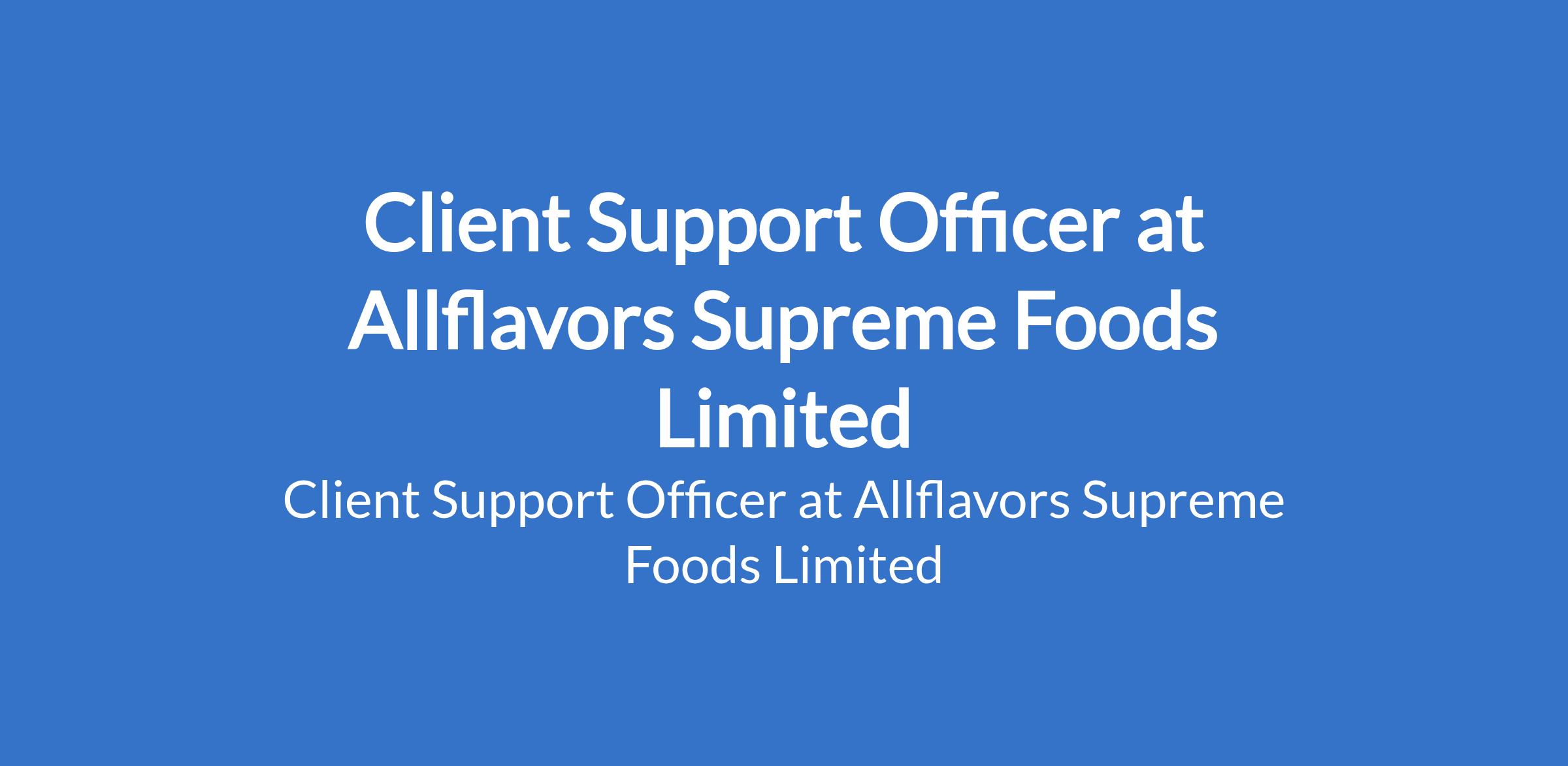 Allflavors Supreme Foods Limited is recruiting to fill the position of: Client Support Officer. The position is located in Amuwo Odofin, Lagos State. Salary: N150,000 - N200,000 / month. Interested candidates should possess relevant qualifications with proven experience in client support, customer service, or account coordination (preferably in FMCG or food manufacturing).