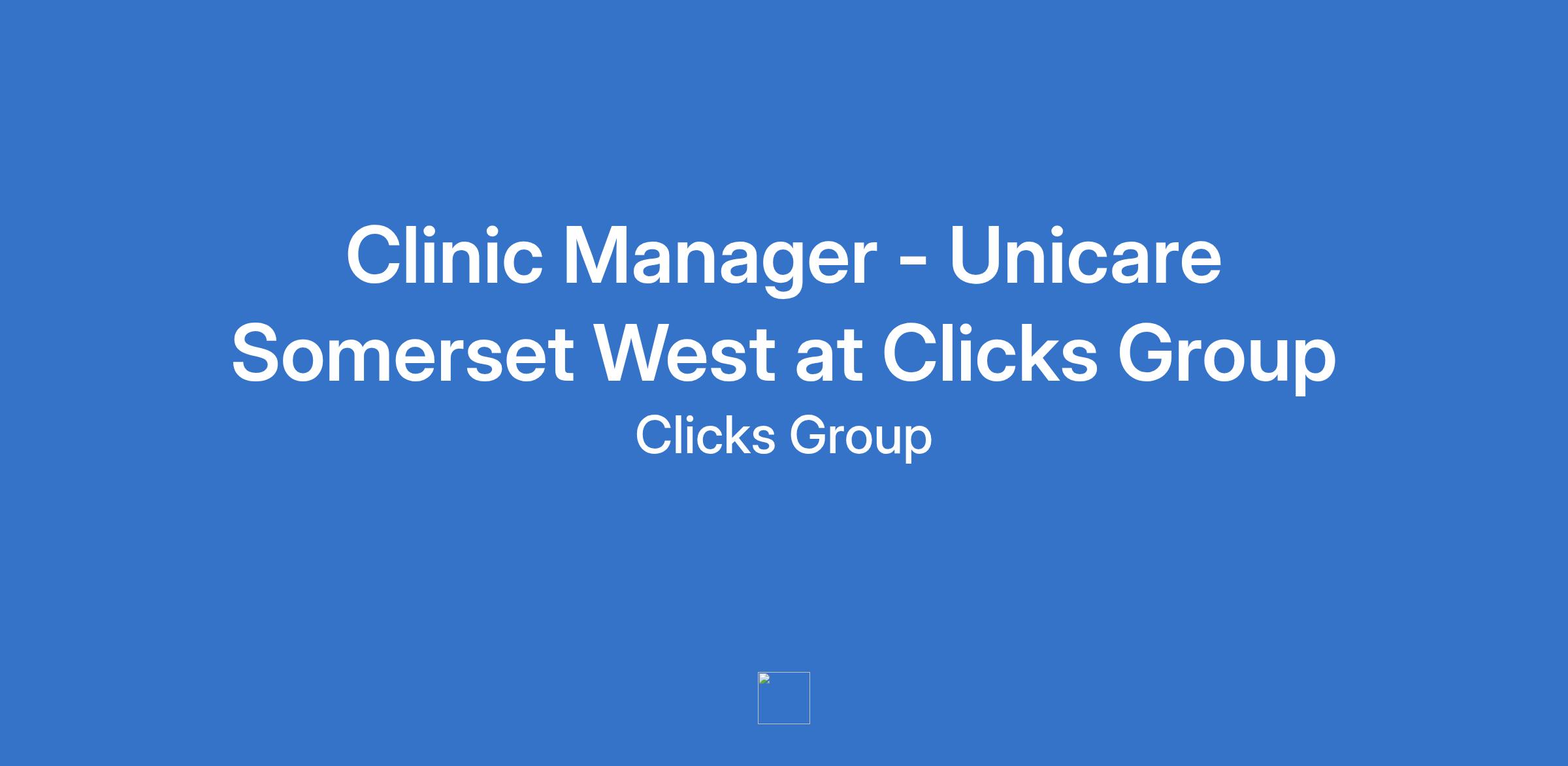 Clinic Manager - Unicare Somerset West at Clicks Group