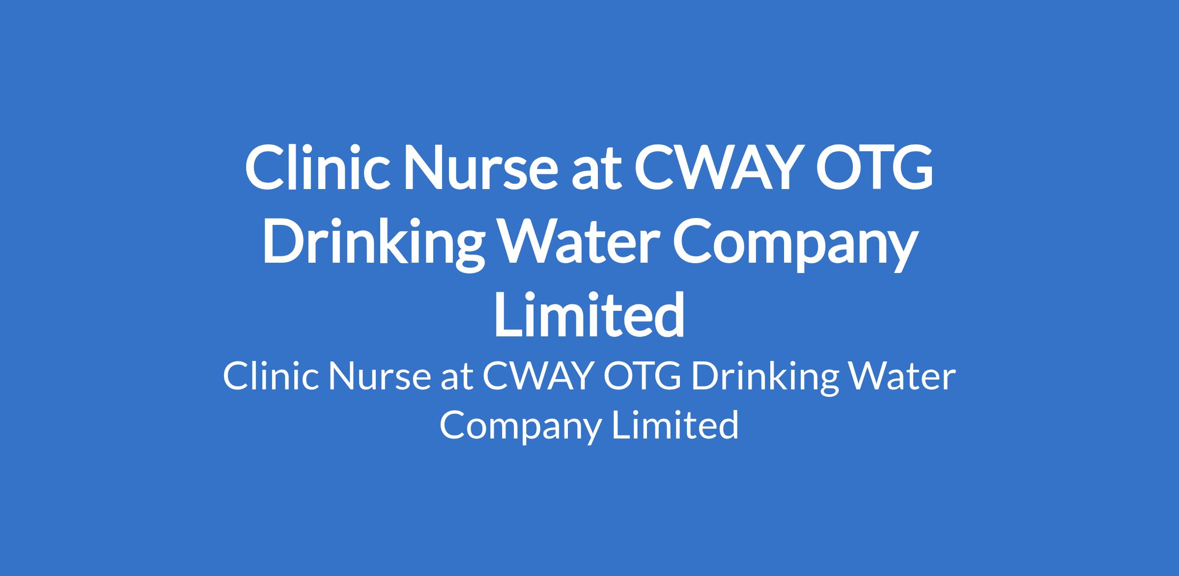 CWAY OTG Drinking Water Company Limited is recruiting to fill the position of: Clinic Nurse. The position is located in Lagos State. Interested candidates should possess a B.Sc in Nursing and BLS Certification with proven 2 years minimum work experience as occupational Nurse.