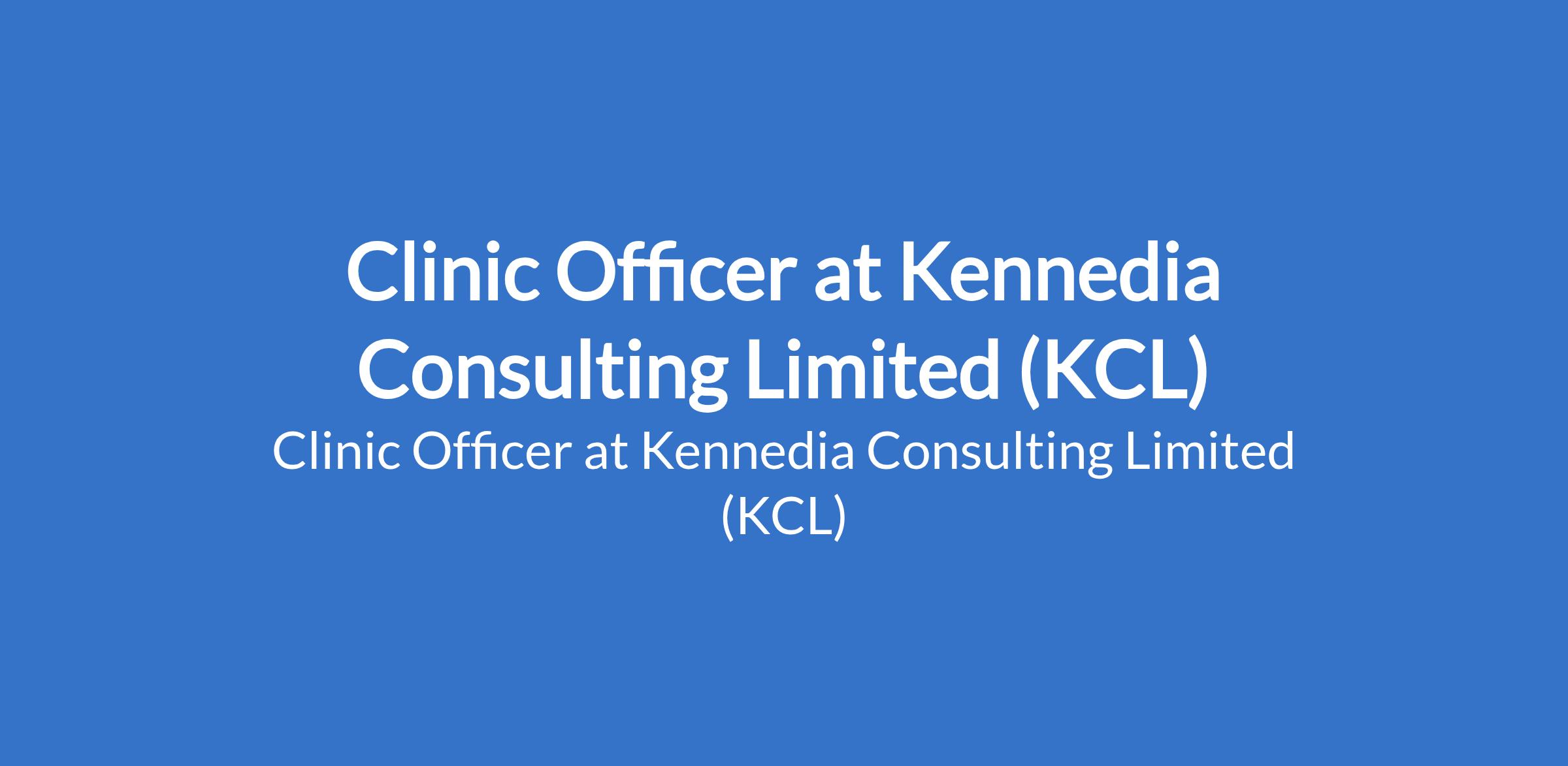 Kennedia Consulting Limited (KCL) is recruiting to fill the position of: Clinic Officer. The position is located in Ikoyi, Lagos State. Salary: N200,000 / month. Interested candidates should possess a Degree or Diploma in Nursing, Community Health, or related medical field; valid practicing license with 2 4 years clinical experience.
