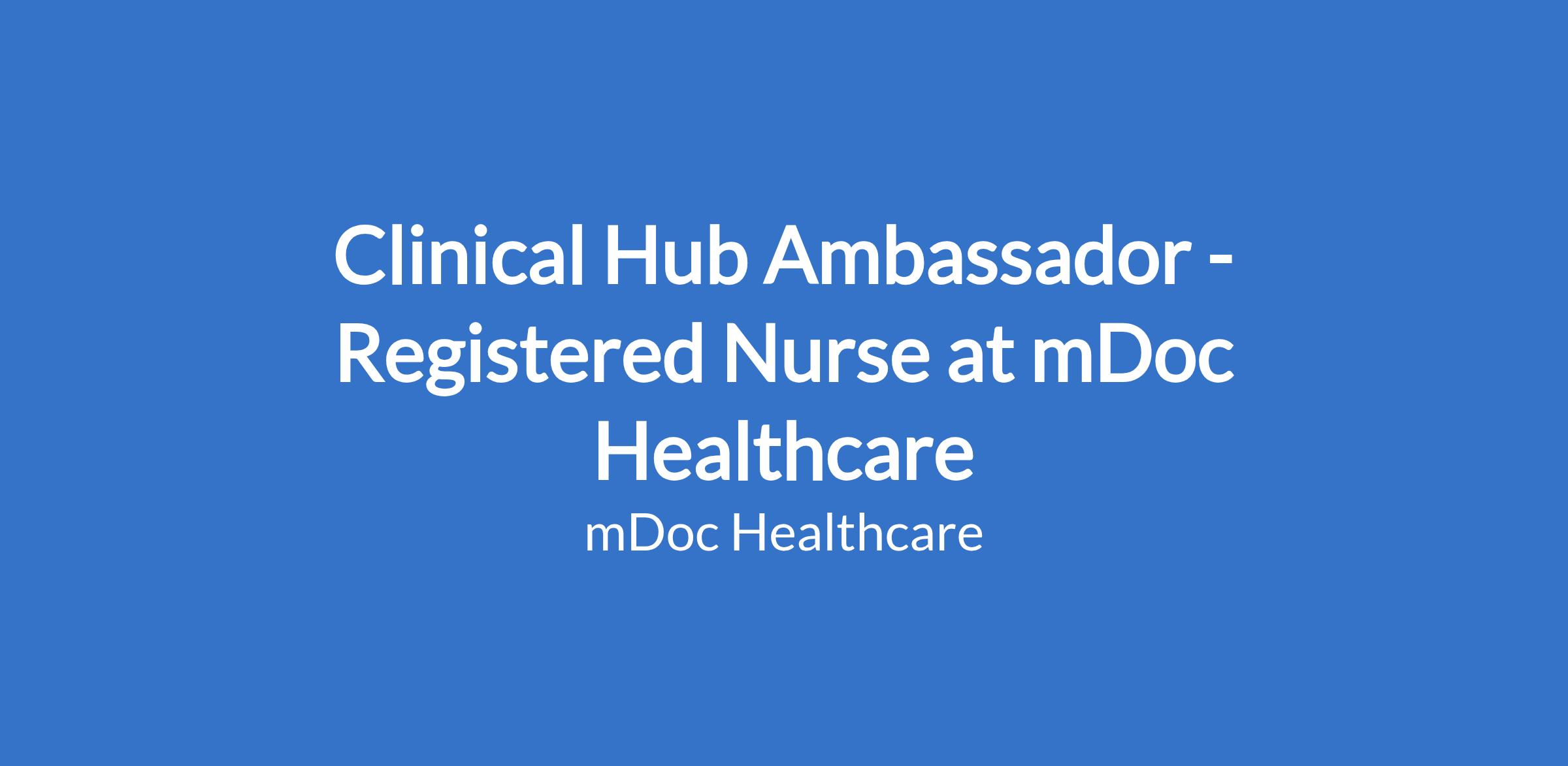 Clinical Hub Ambassador - Registered Nurse at mDoc Healthcare