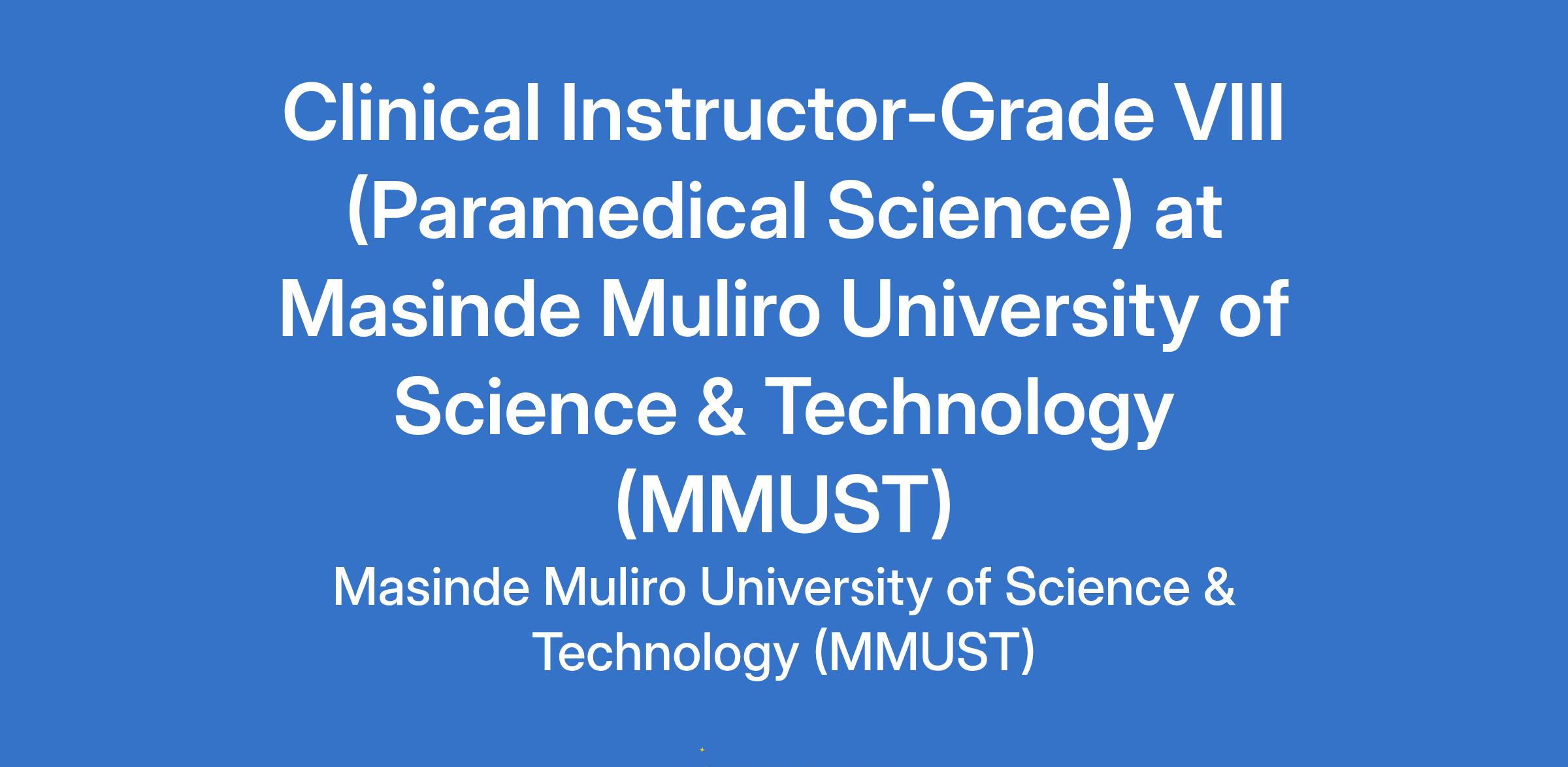 Clinical Instructor-Grade VIII (Paramedical Science) at Masinde Muliro University of Science & Technology (MMUST)