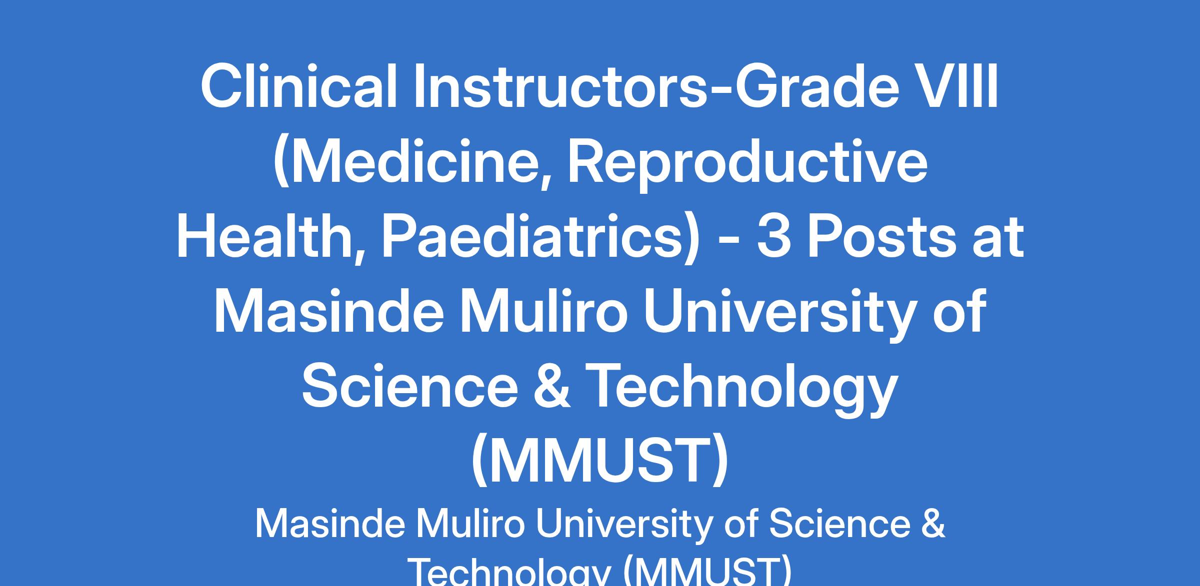 Clinical Instructors-Grade VIII (Medicine, Reproductive Health, Paediatrics) - 3 Posts at Masinde Muliro University of Science & Technology (MMUST)