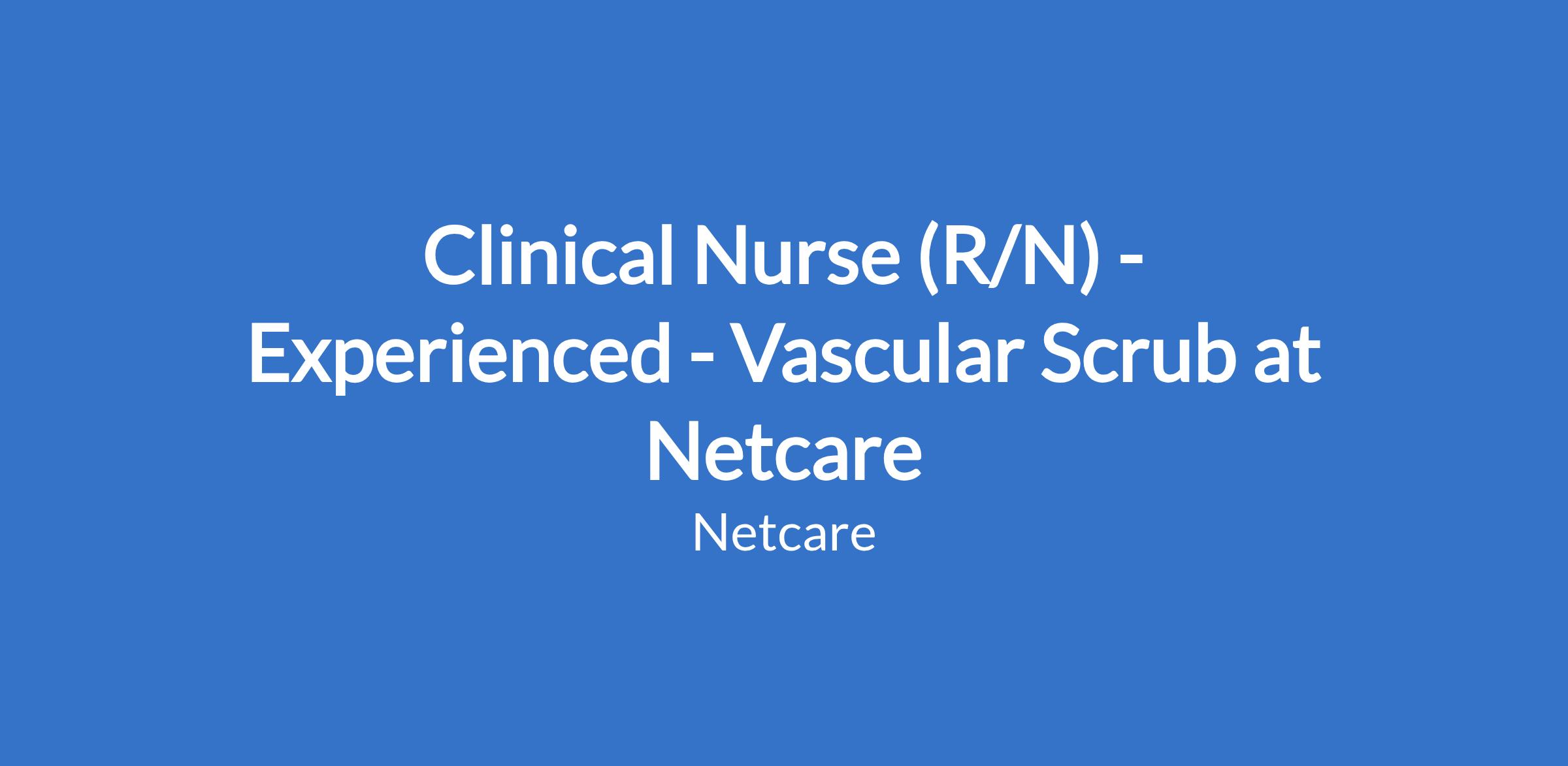 Clinical Nurse (R/N) - Experienced - Vascular Scrub at Netcare