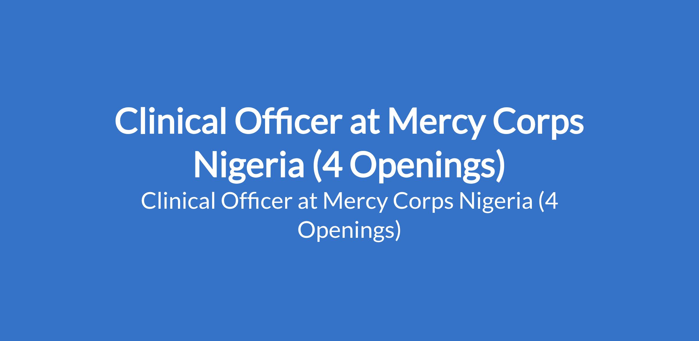 Mercy Corps Nigeria is recruiting to fill the position of: Clinical Officer. The position is located in Damaturu - Borno, Jere, Ngala and Dikwa - Yobe States. Interested candidates should possess a B.Sc Degree in Nursing or MBBS in Medicine with a minimum of two years work experience in NGO environment in clinical setups.