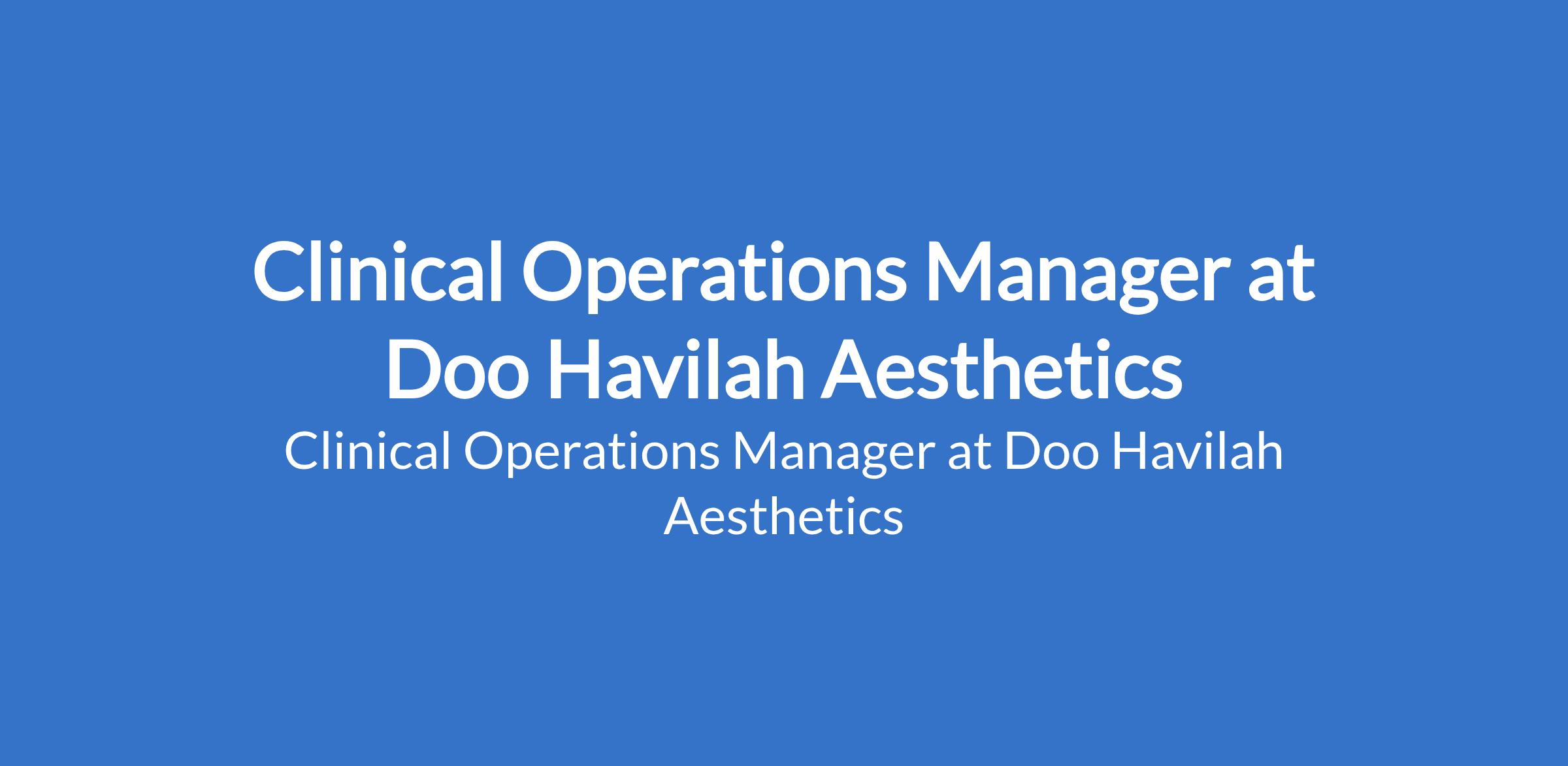 Clinical Operations Manager at Doo Havilah Aesthetics