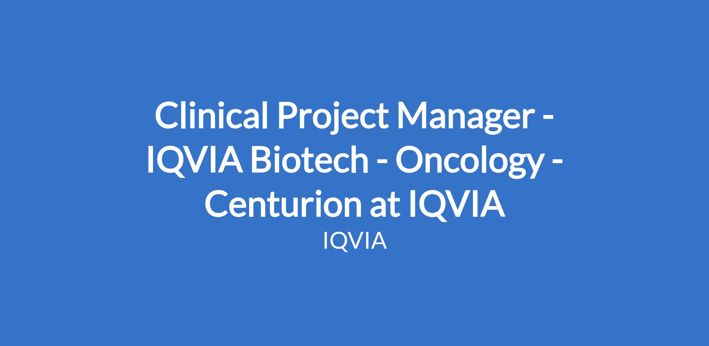 Clinical Project Manager - IQVIA Biotech - Oncology - Centurion at IQVIA