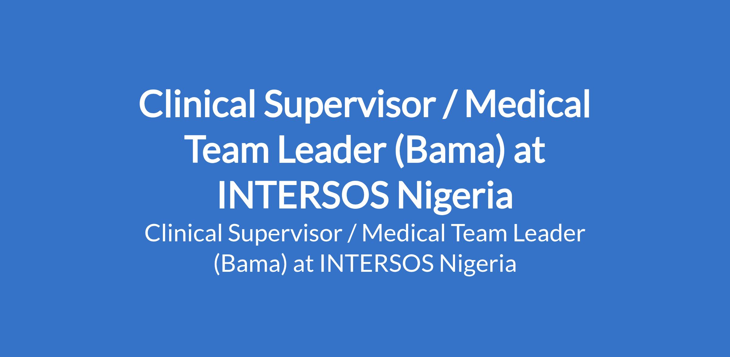 INTERSOS Nigeria is recruiting to fill the position of: Clinical Supervisor / Medical Team Leader. The position is located in Bama, Borno State. Interested candidates should possess a Bachelors Degree in Medicine (MB.BS / MBChB) with experience in emergency with over 2 years experience in a humanitarian context.