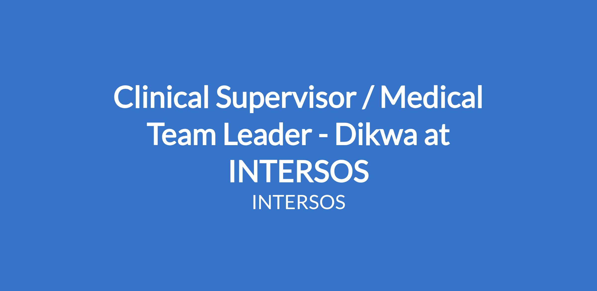 Clinical Supervisor / Medical Team Leader - Dikwa at INTERSOS