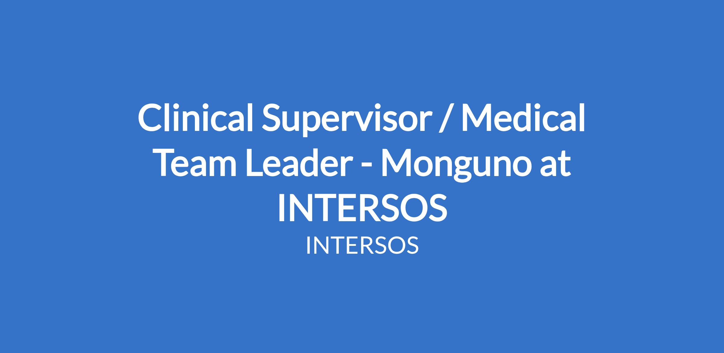 Clinical Supervisor / Medical Team Leader - Monguno at INTERSOS