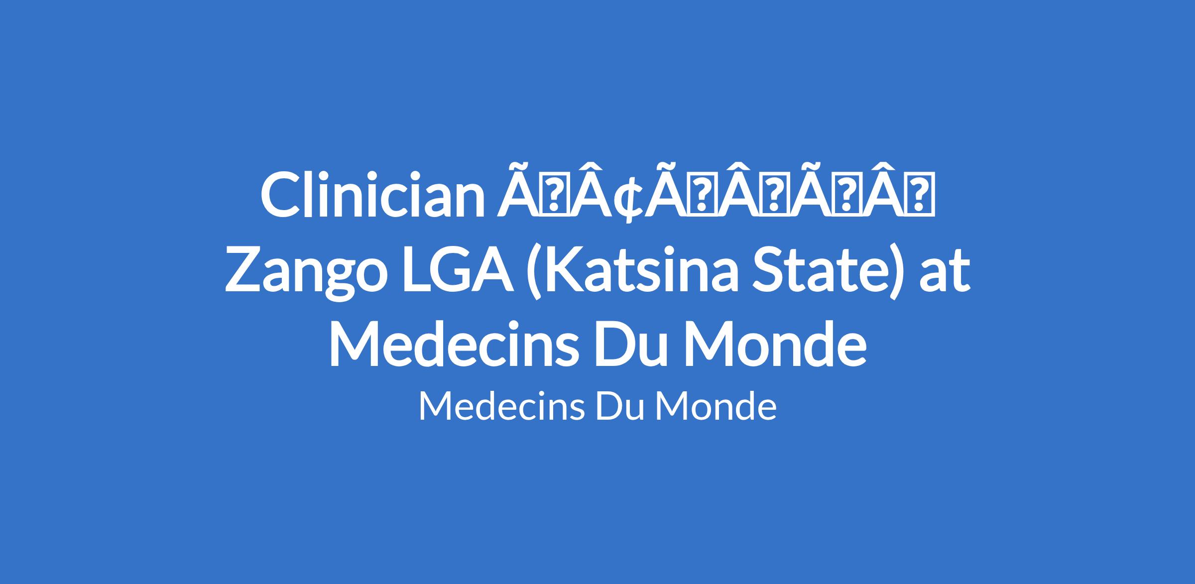 Clinician âÃÂàZango LGA (Katsina State) at Medecins Du Monde