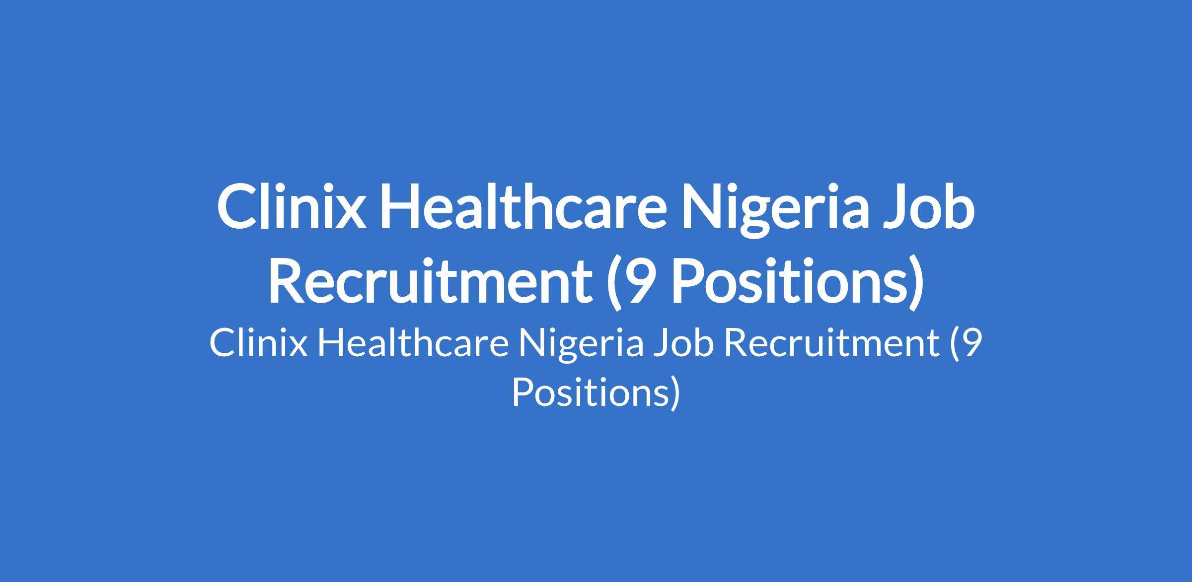 Clinix Healthcare Nigeria is recruiting suitable candidates to fill the following positions in Lagos and Ogun States: Optometrist, Sonographer, Porter, Customer Service Manager, Radiographer, Medical Laboratory Scientist, and Customer Service Representative.