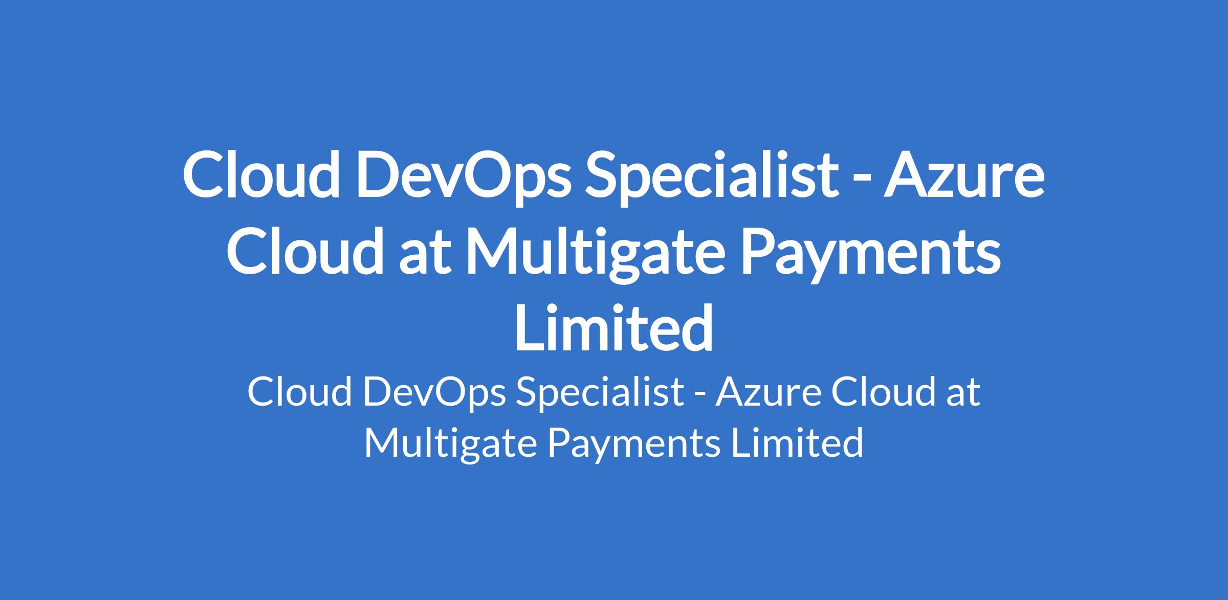 Multigate Payments Limited is recruiting to fill the position of: Cloud DevOps Specialist - Azure Cloud. The position is located in Lagos State. Interested candidates should possess a Bachelor's Degree in Computer Science, Information Technology, or related fields with a minimum of 5 years experience in Cloud DevOps, with a focus on Azure.