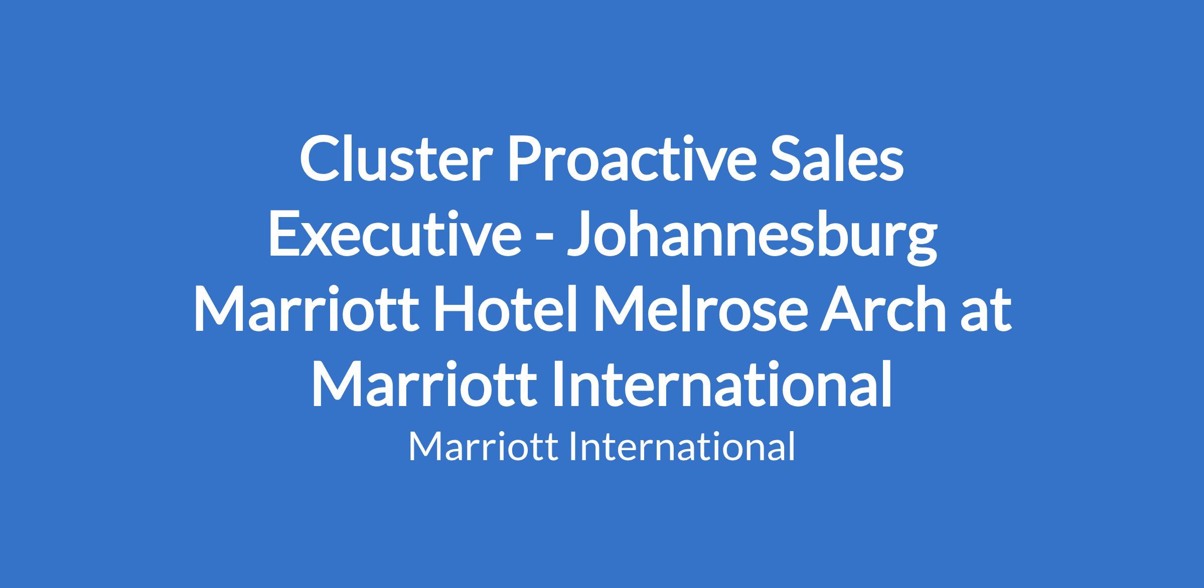Cluster Proactive Sales Executive - Johannesburg Marriott Hotel Melrose Arch at Marriott International