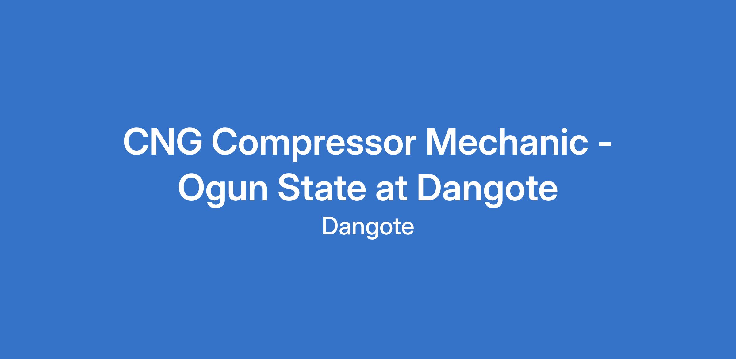 CNG Compressor Mechanic - Ogun State at Dangote