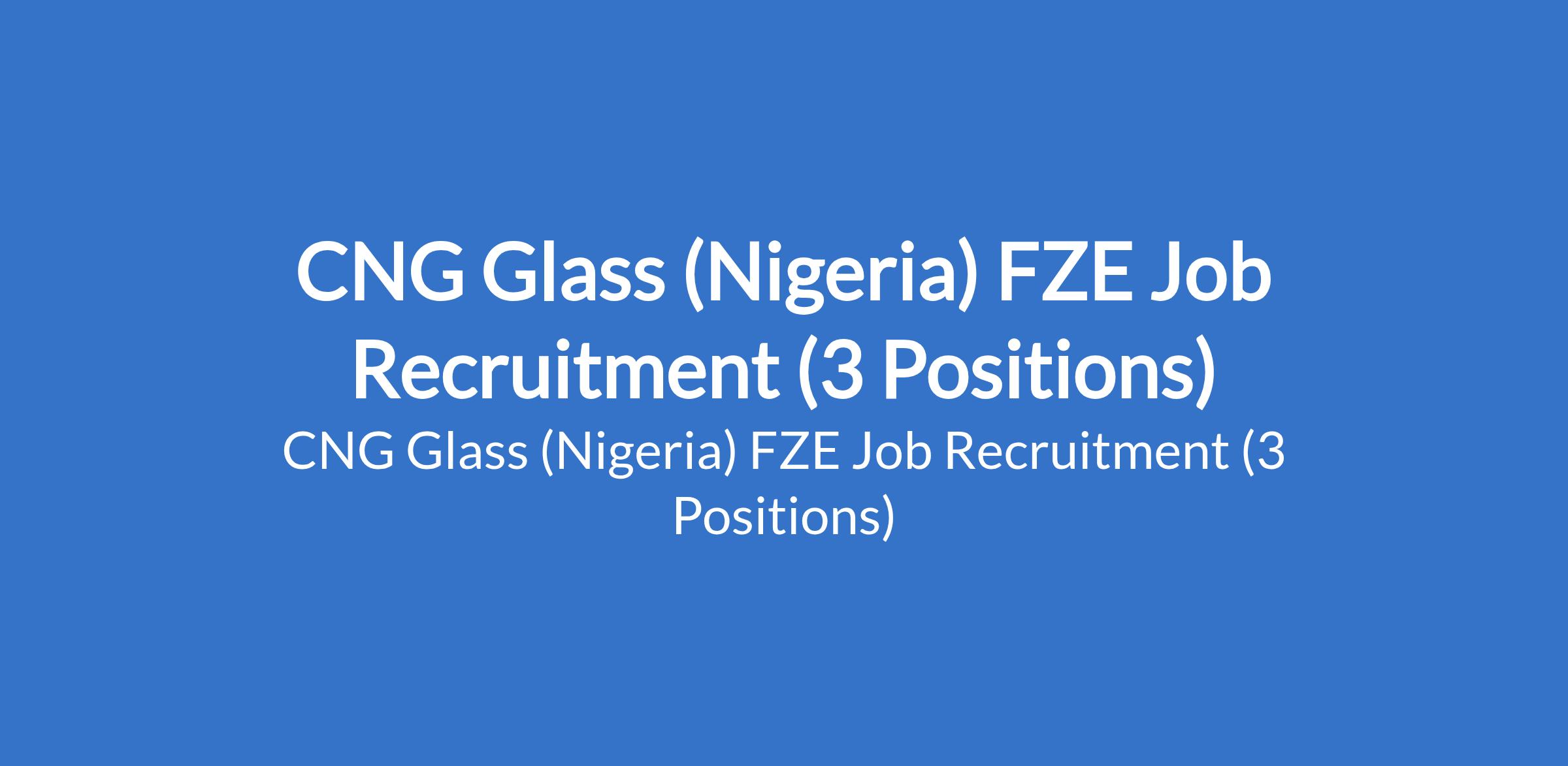 CNG Glass (Nigeria) FZE Job Recruitment (3 Positions)