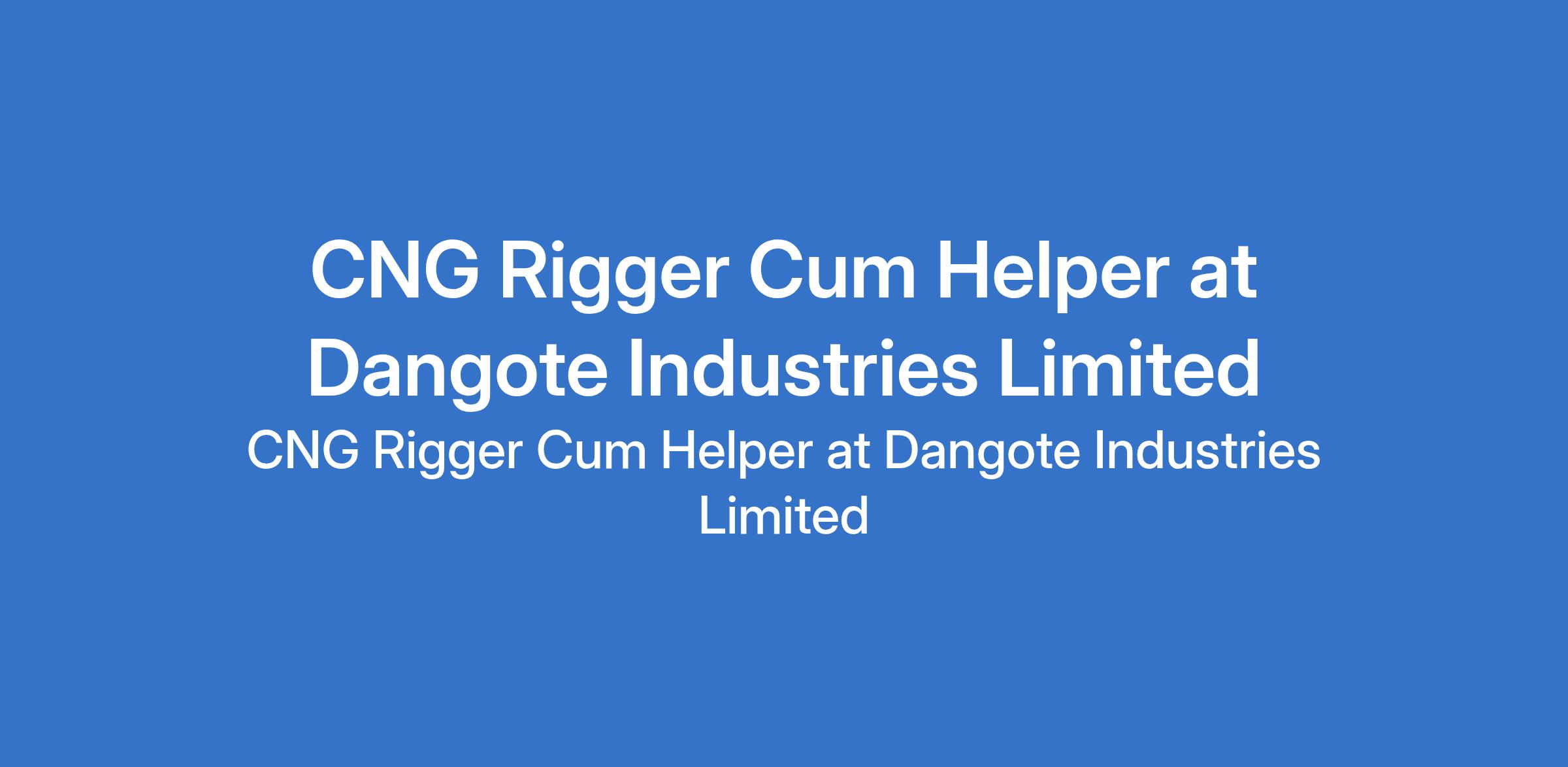 Dangote Industries Limited is recruiting to fill the position of: CNG Rigger Cum Helper. The position is located in Obajana Plant, Kogi State. Interested candidates should possess a B. Eng, HND , ND, in Mechanical Engineering or related technical field Technical Certificate, Rigger Certification (Lifting & Rigging) is a major advantage with 24 years experience in rigging and lifting operations in an industrial setting.