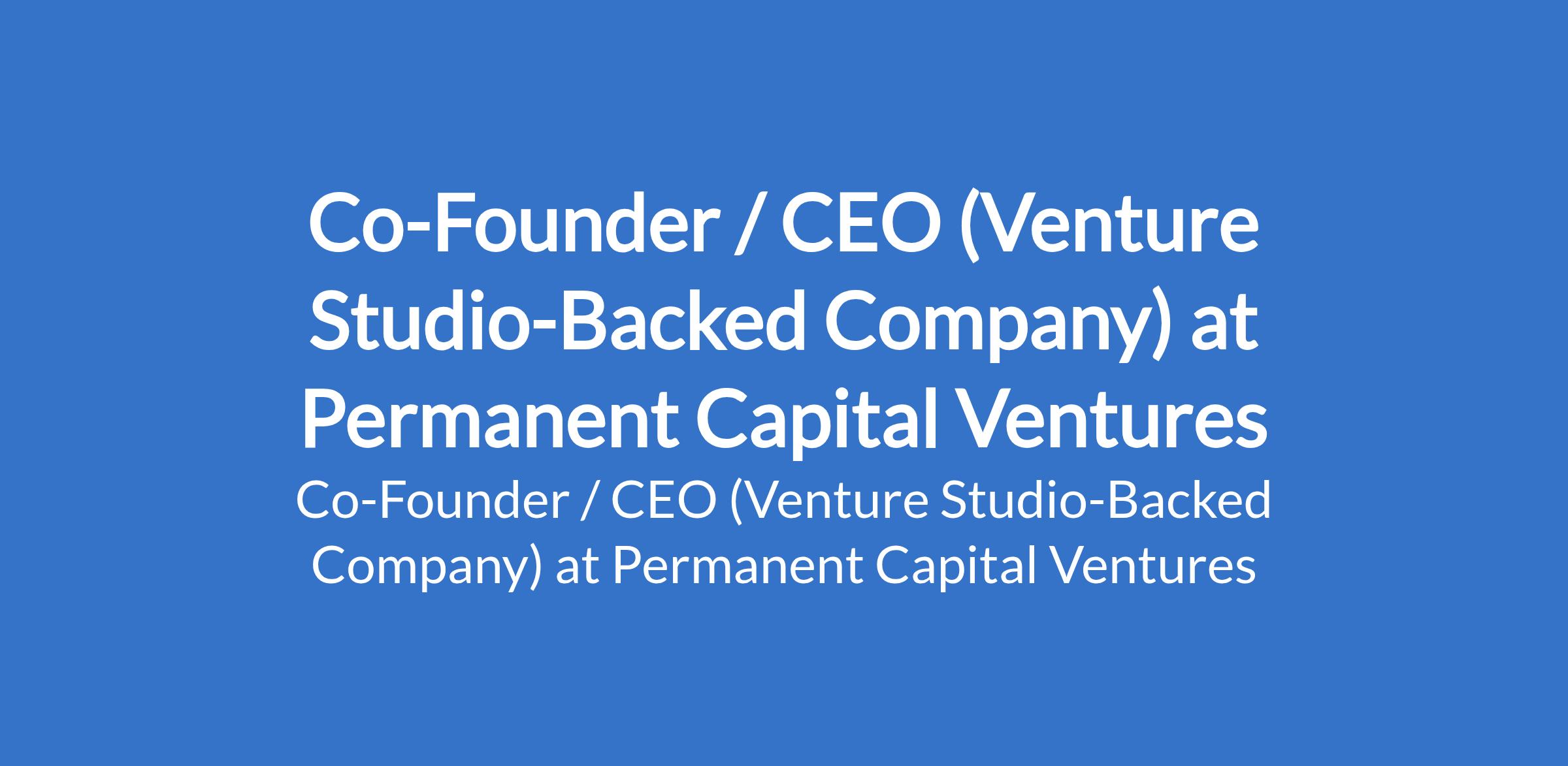 Co-Founder / CEO (Venture Studio-Backed Company) at Permanent Capital Ventures