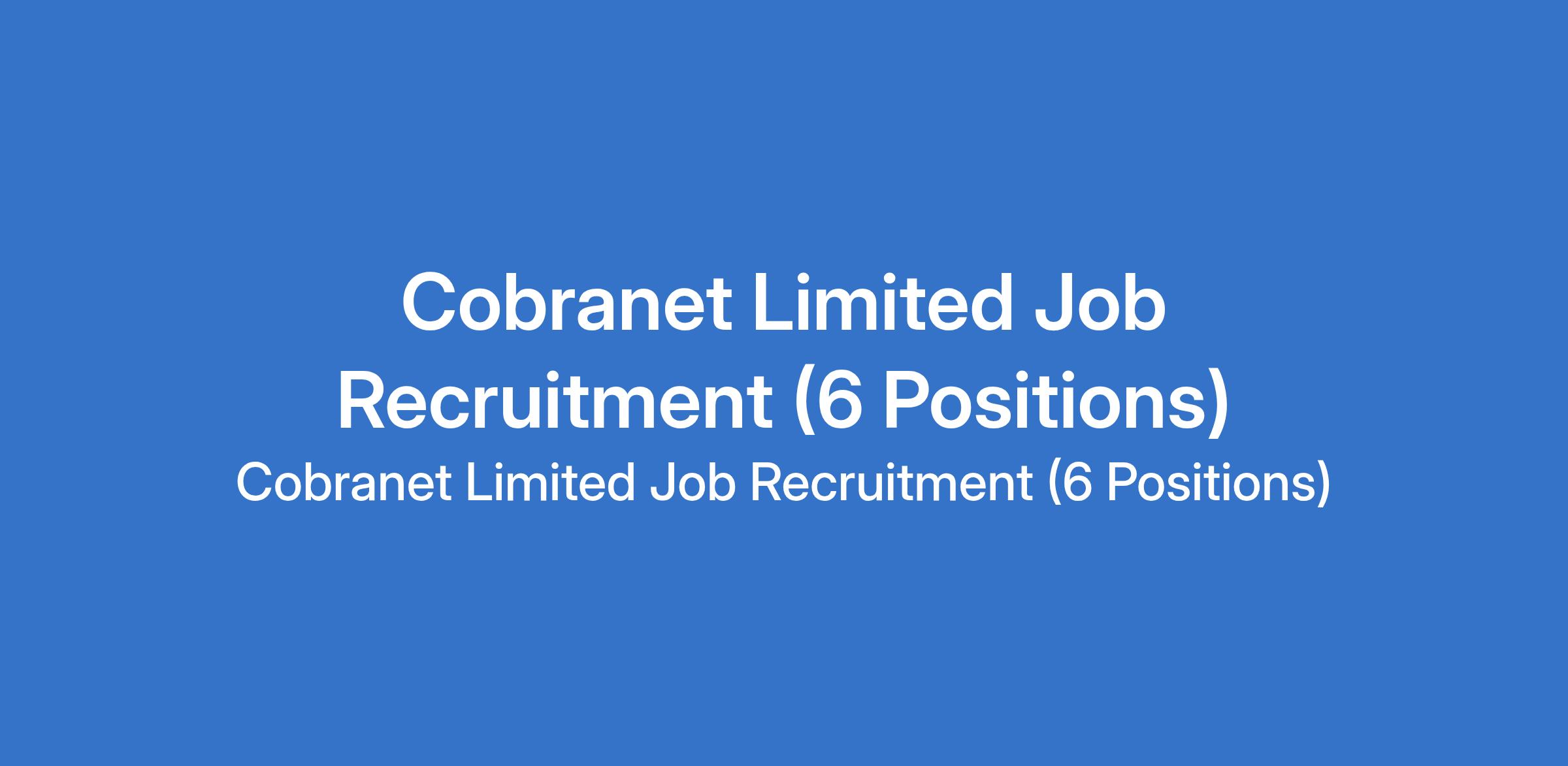 Cobranet Limited is recruiting suitably qualified candidates to fill the following positions in Lagos State: Senior Fiber Engineer, Senior Account Management Officer, Enterprise Sales Executive, Service Delivery Officer (Technical Project Officer), Fiber Installation Support Technician, and Fiber Optics Engineer.