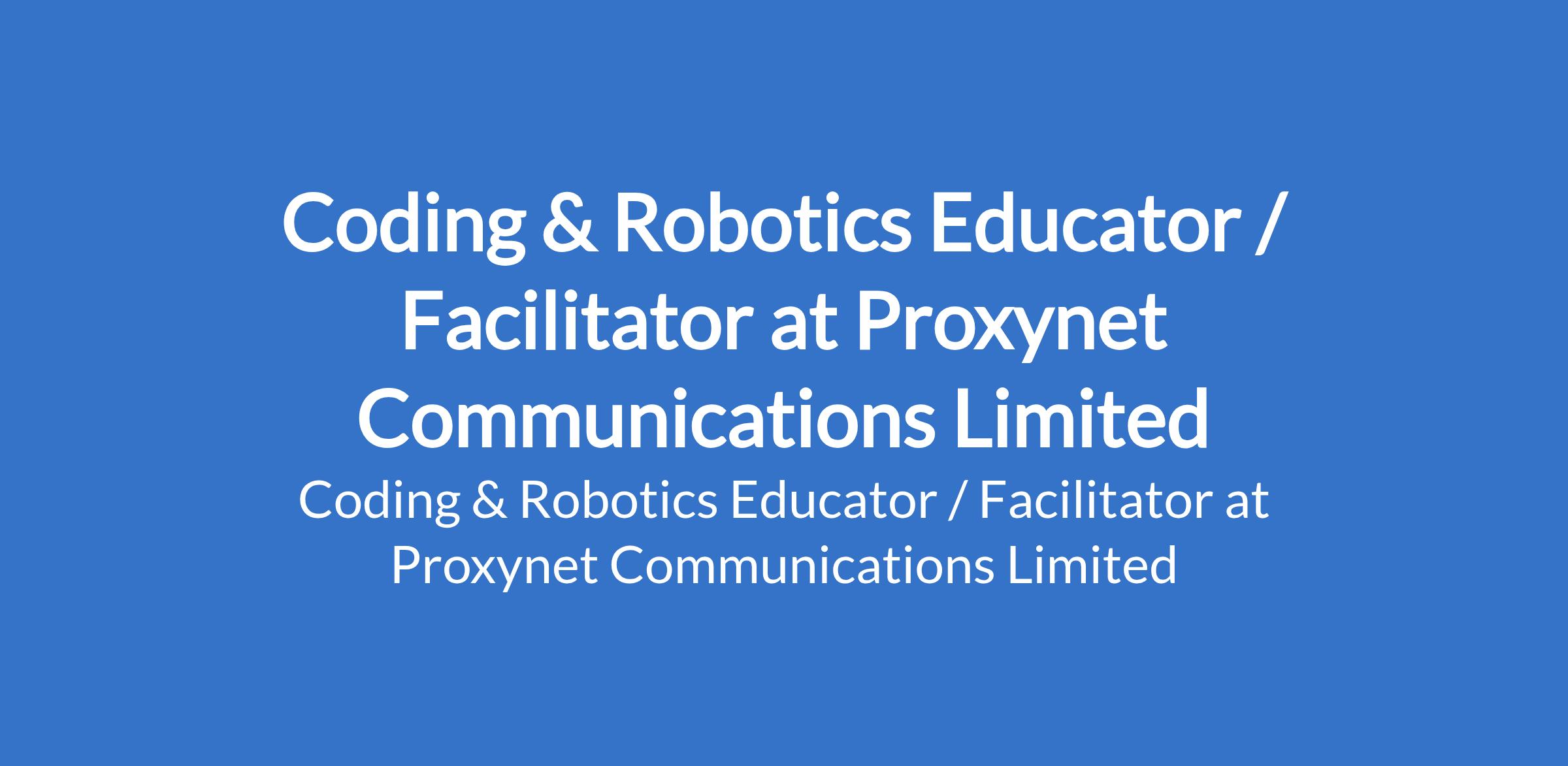 Proxynet Communications Limited is recruiting to fill the position of: Coding & Robotics Educator / Facilitator. The position is located in Galadima, Gwarinpa, Abuja (FCT). Interested candidates must have a Computer Science Degree or a relevant Degree with experience in working with Educational Game engines such as Godot, Buildbox, Kodu, etc.