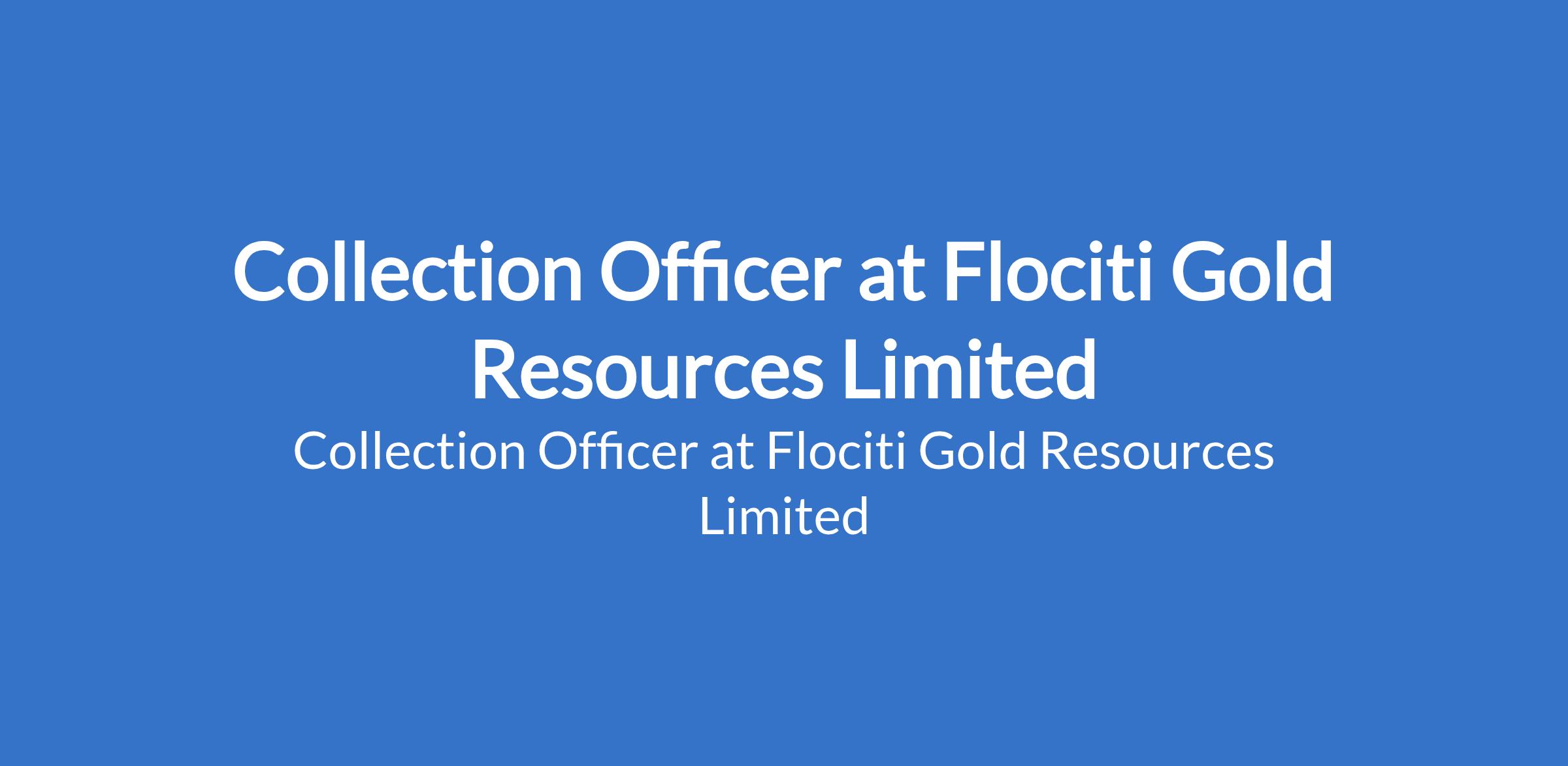 Flociti Gold Resources Limited is recruiting to fill the position of: Collection Officer. The position is located in Ibadan, Oyo State. Salary: N100,000 - N120,000 monthly. Interested candidates should possess relevant academic qualifications, such as a Degree in Finance, Business, or a related field.