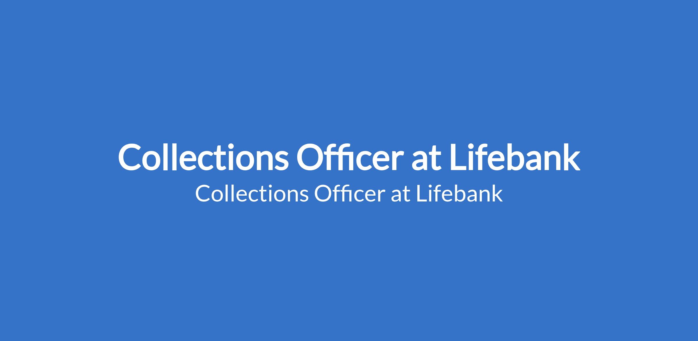 Lifebank is recruiting to fill the position of: Collections Officer. The position is located in Akure, Ondo State. Salary: N120,000 - N150,000 monthly. Interested candidates should possess a minimum of OND / HND / Bachelors Degree in any relevant field with 13 years experience in collections, debt recovery, field sales, or customer engagement.