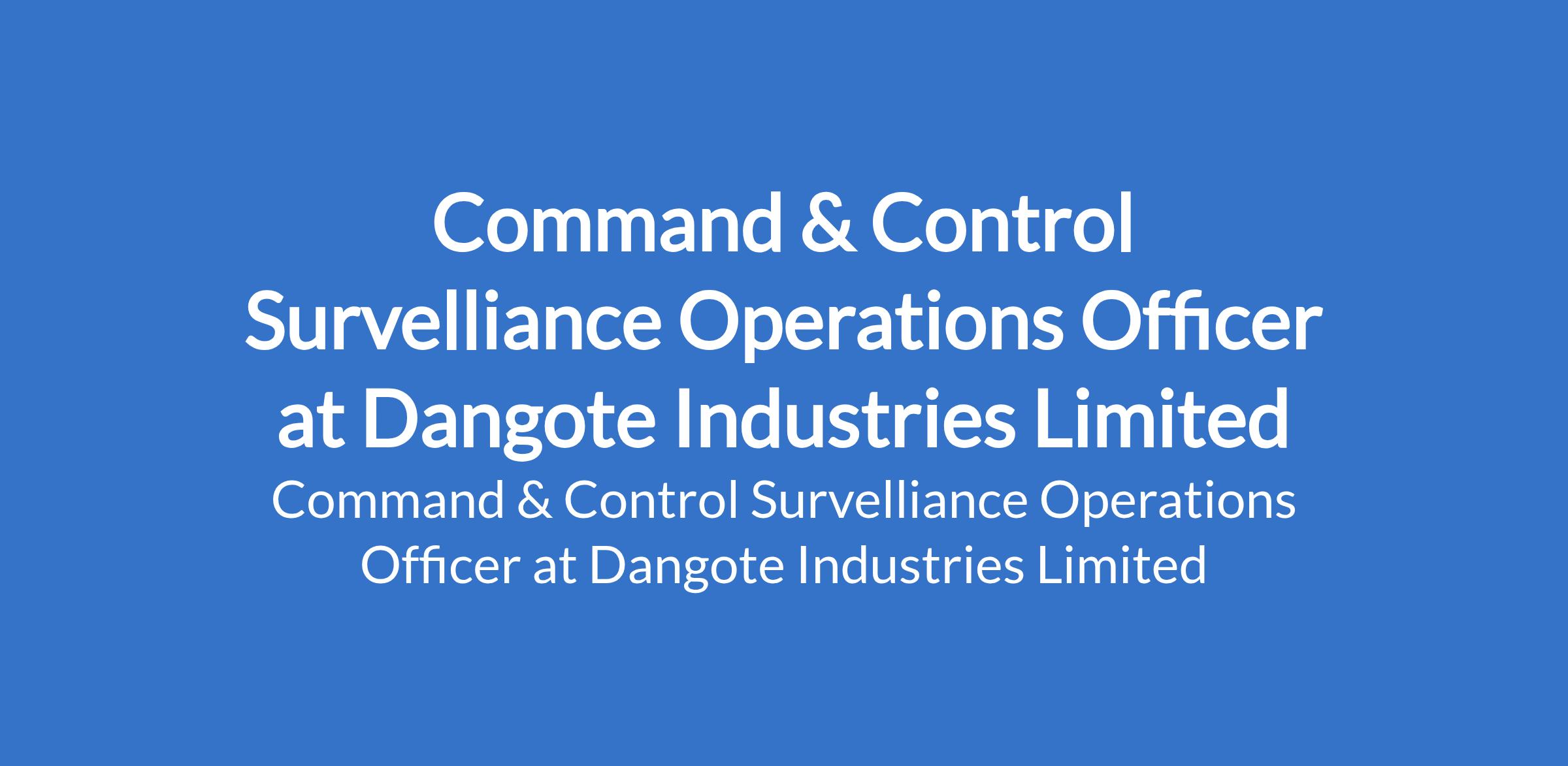 Dangote Industries Limited is recruiting to fill the position of: Command & Control Survelliance Operations Officer. The position is located in Lagos State. Interested candidates should be graduates in Science or a related technical field with 2 - 5 years of experience in Command Center Operations, Network Operations, or surveillance systems.