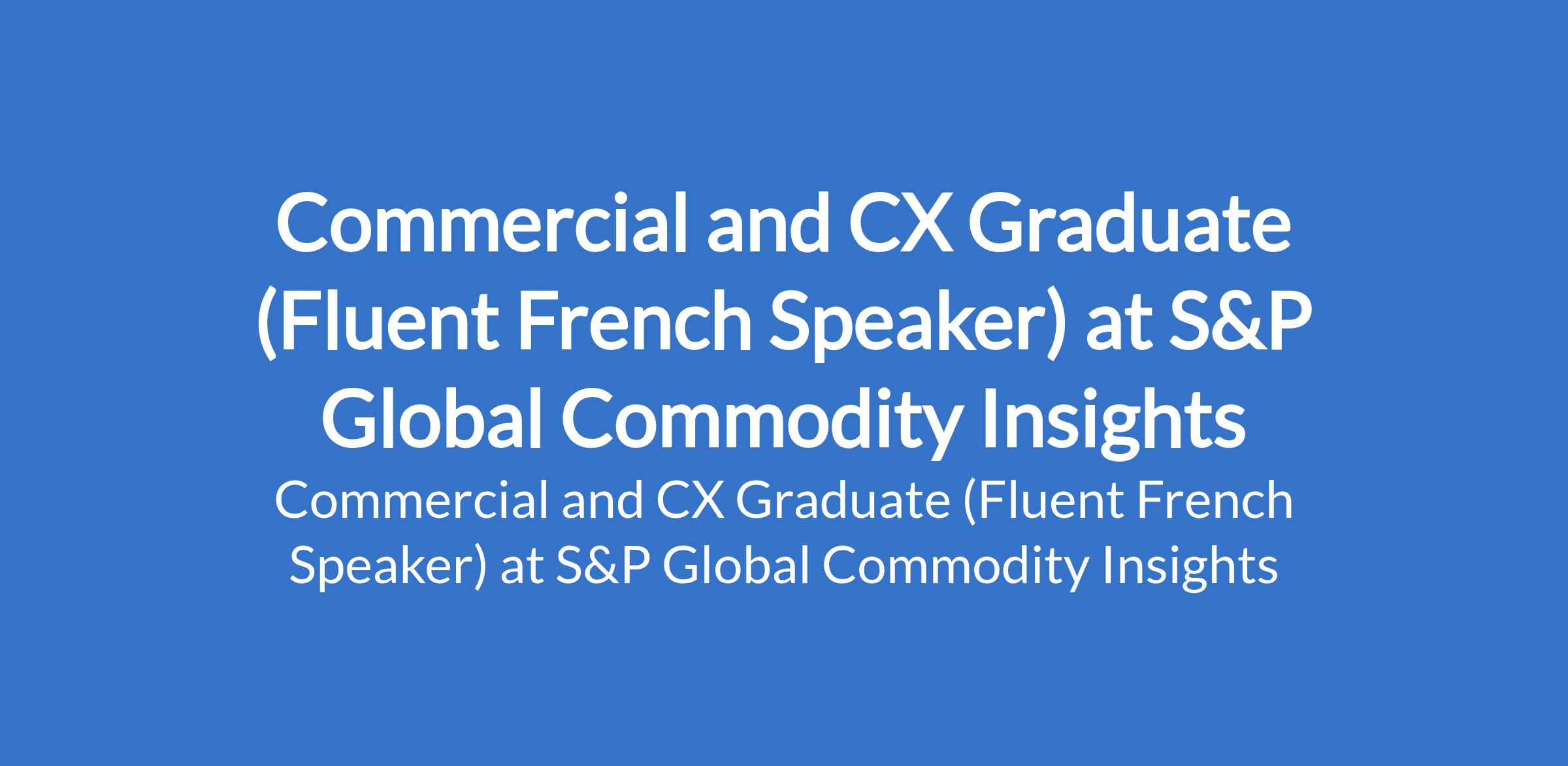 S&P Global Commodity Insights is recruiting to fill the position of: Commercial and CX Graduate (Fluent French Speaker). The position is located in Abuja (FCT). Interested candidates should be able to join a class of new hires in late August 2026 with a BSc or BA degree, or equivalent; Fluency in both French and English is essential.