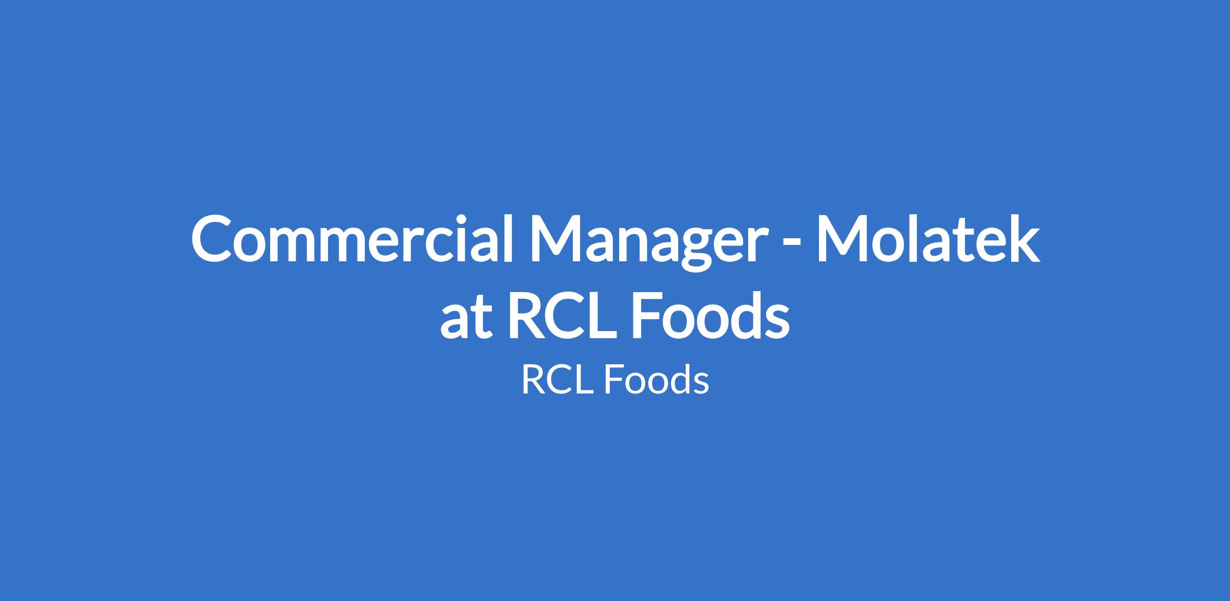 Commercial Manager - Molatek at RCL Foods