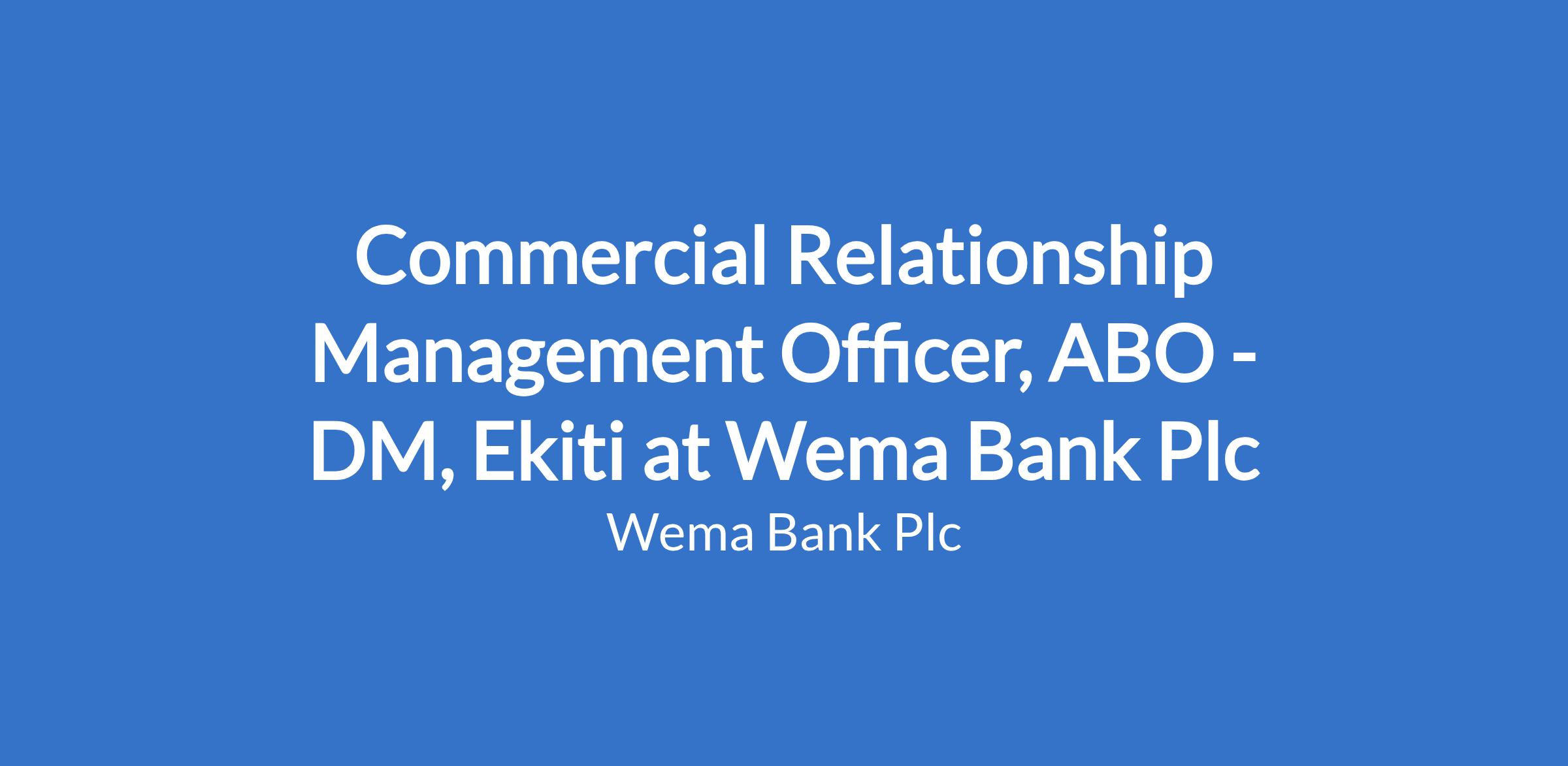Commercial Relationship Management Officer, ABO - DM, Ekiti at Wema Bank Plc
