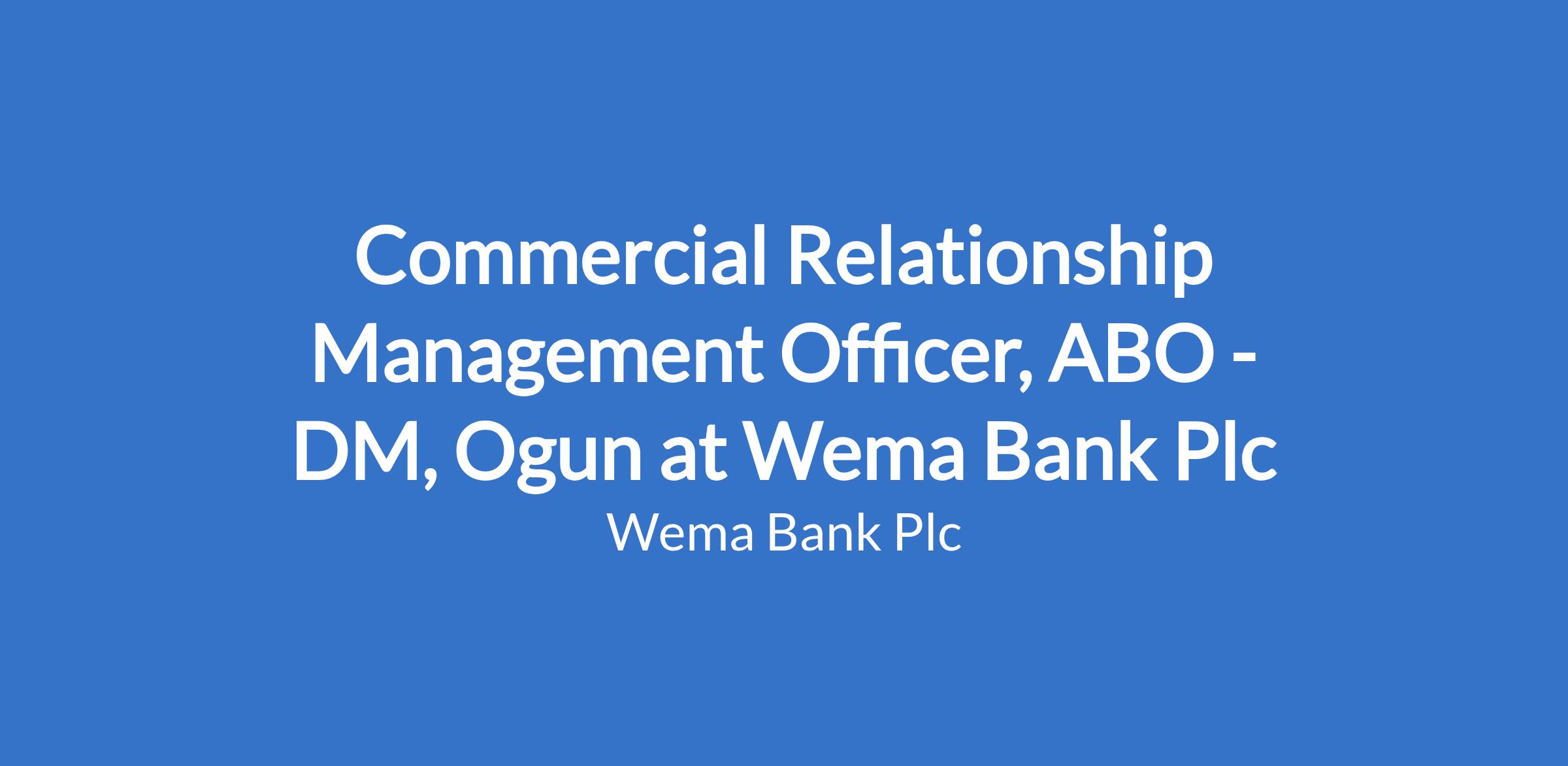 Commercial Relationship Management Officer, ABO - DM, Ogun at Wema Bank Plc