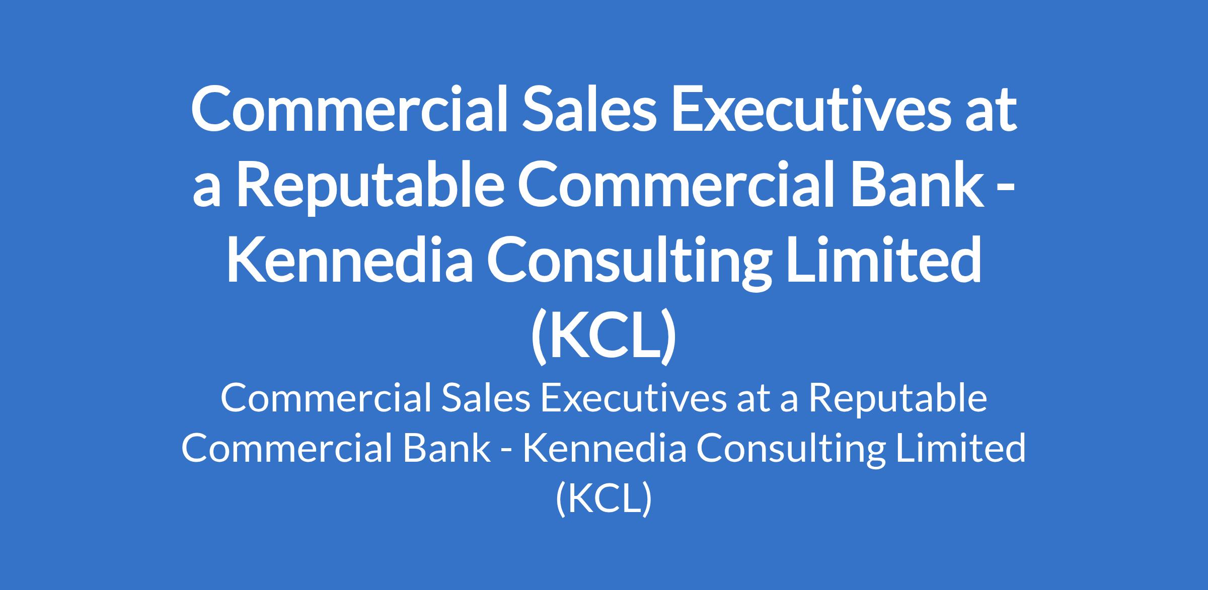 Kennedia Consulting Limited (KCL) - Our client, a reputable commercial bank is recruiting to fill the position of: Commercial Sales Executive. Salary: N133,000 monthly. Interested candidates should possess a minimum of an HND / BSc Degree in a related field with relevant experience.