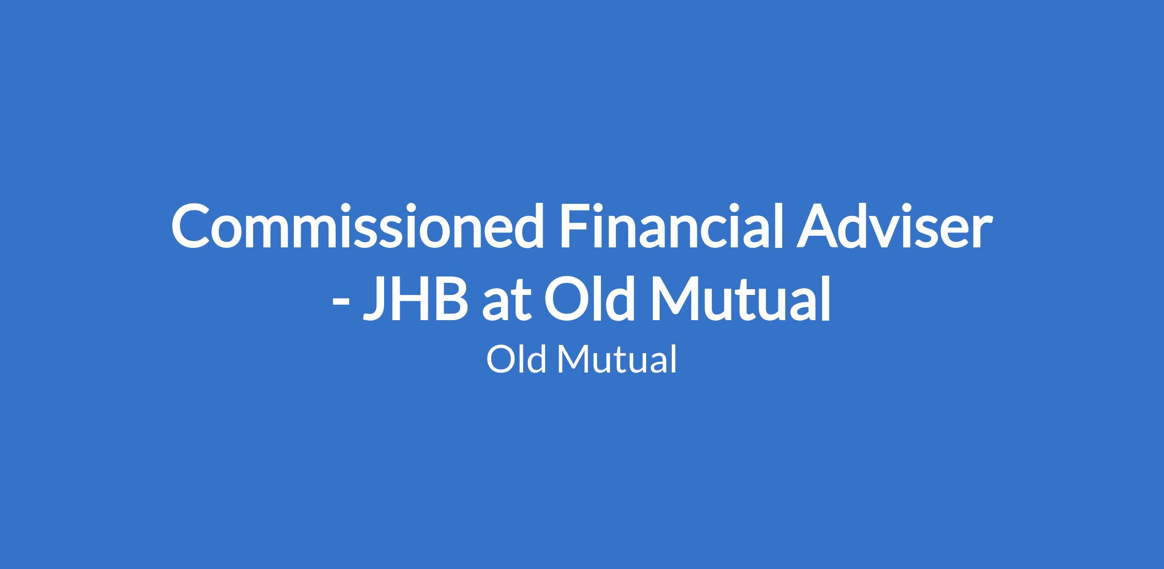 Commissioned Financial Adviser - JHB at Old Mutual