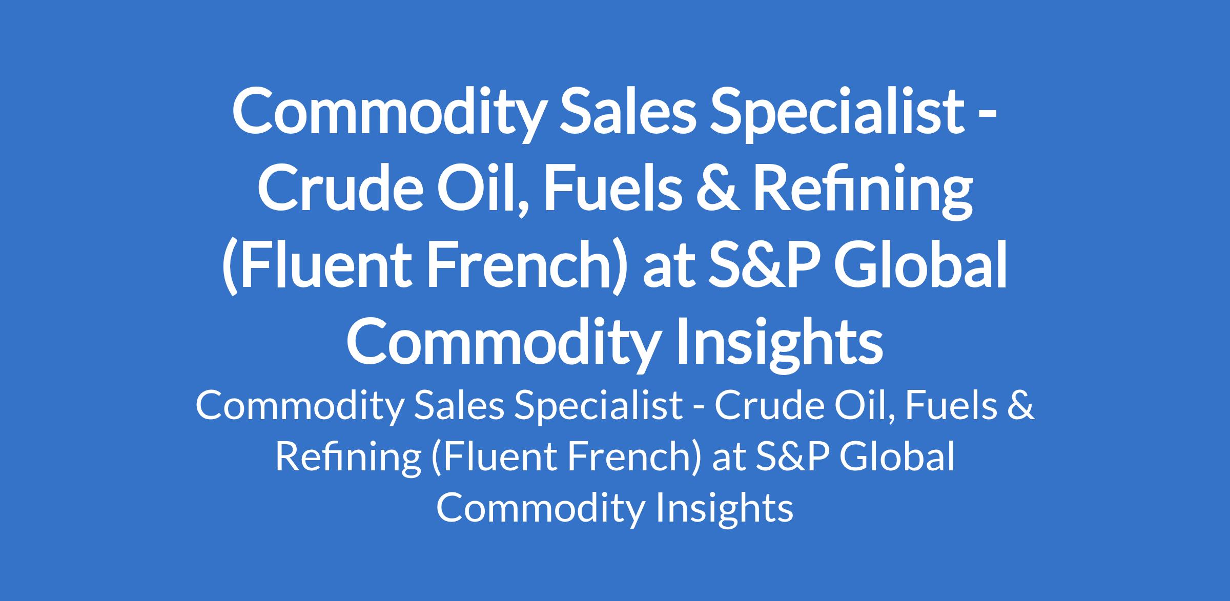 S&P Global Commodity Insights is recruiting to fill the position of: Commodity Sales Specialist - Crude Oil, Fuels & Refining (Fluent French). The position is located in Abuja. Interested candidates should possess a relevant qualification with 3+ years experience and a proven track record in Crude Oil, Fuels or Refining markets or Solution-selling background.