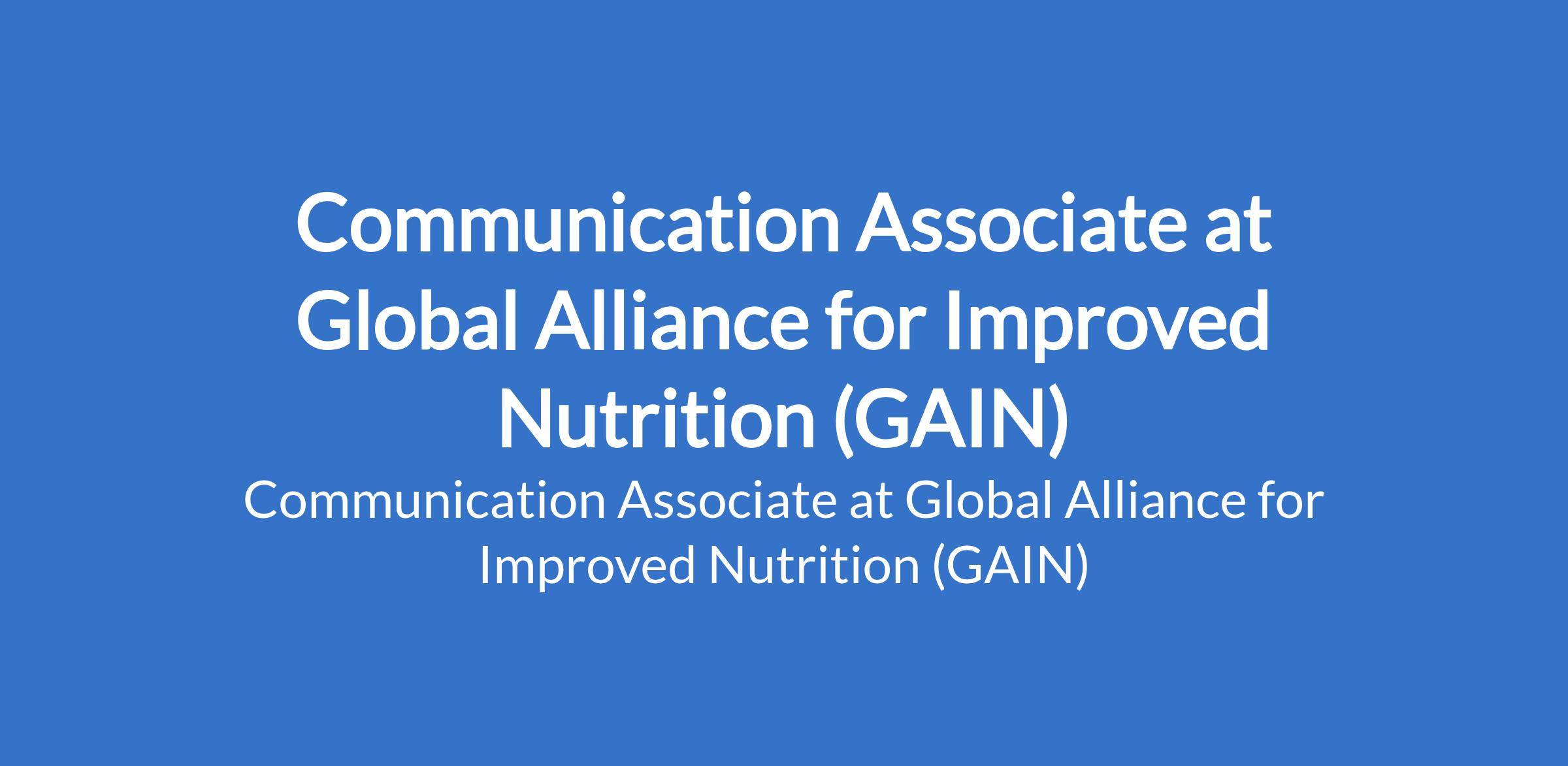 Global Alliance for Improved Nutrition (GAIN) is recruiting to fill the position of: Communication Associate. The position is located in Abuja. The associate will support GAINs operational work as well as make sure that GAINs information, advice, and guidance effectively reach key audiences to increase uptake of nutritious and safe diets. Interested candidates should possess relevant qualifications.