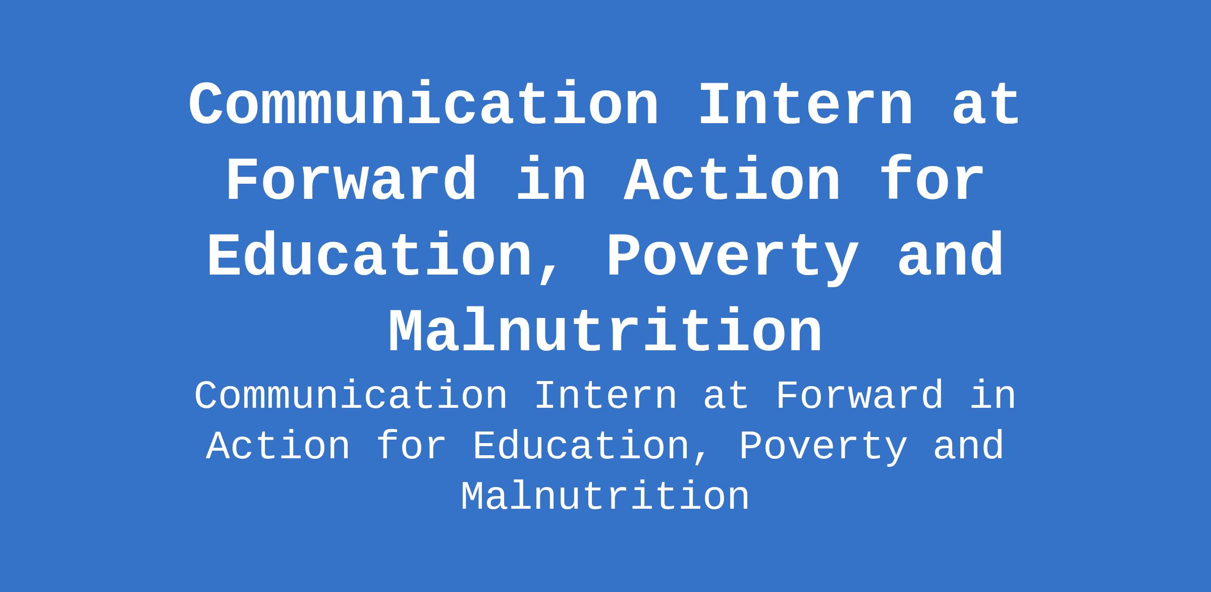 Forward in Action for Education, Poverty and Malnutrition is recruiting to fill the position of: Communication Intern. The position is located in Jigawa State. Interested candidates should possess a Bachelors Degree / HND qualification in Computer Science, Mass Communication, English Language or any related discipline and an advanced knowledge of Microsoft Office, particularly Excel and PowerPoint; with a minimum of 2 years professional experience, including demonstrated logistic and administrative experience