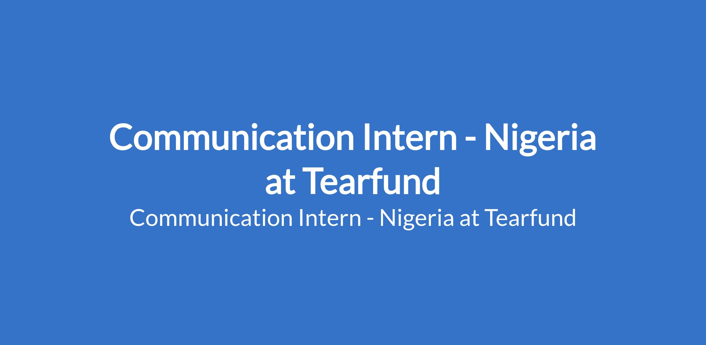 Tearfund is recruiting to fill the position of: Communication Intern - Nigeria. The position is located in Abuja. This internship is an excellent opportunity to gain hands-on experience in storytelling, media engagement, content creation, and strategic communication in a humanitarian and development context. Interested candidates should have recently completed a Degree in Communications, Journalism, Public Relations, or related field.