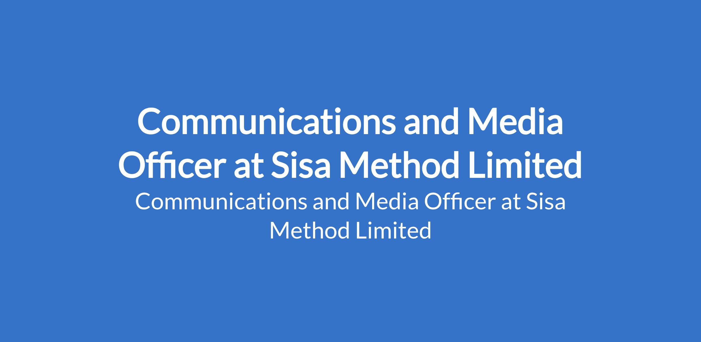 Sisa Method Limited is recruiting to fill the position of: Communications and Media Officer. The position is located in Lagos State. Interested candidates should possess a Bachelors Degree in Communications, Media, Public Relations, Marketing, Journalism, or related field with 24 years of experience in communications, media relations, public relations, or digital communications.