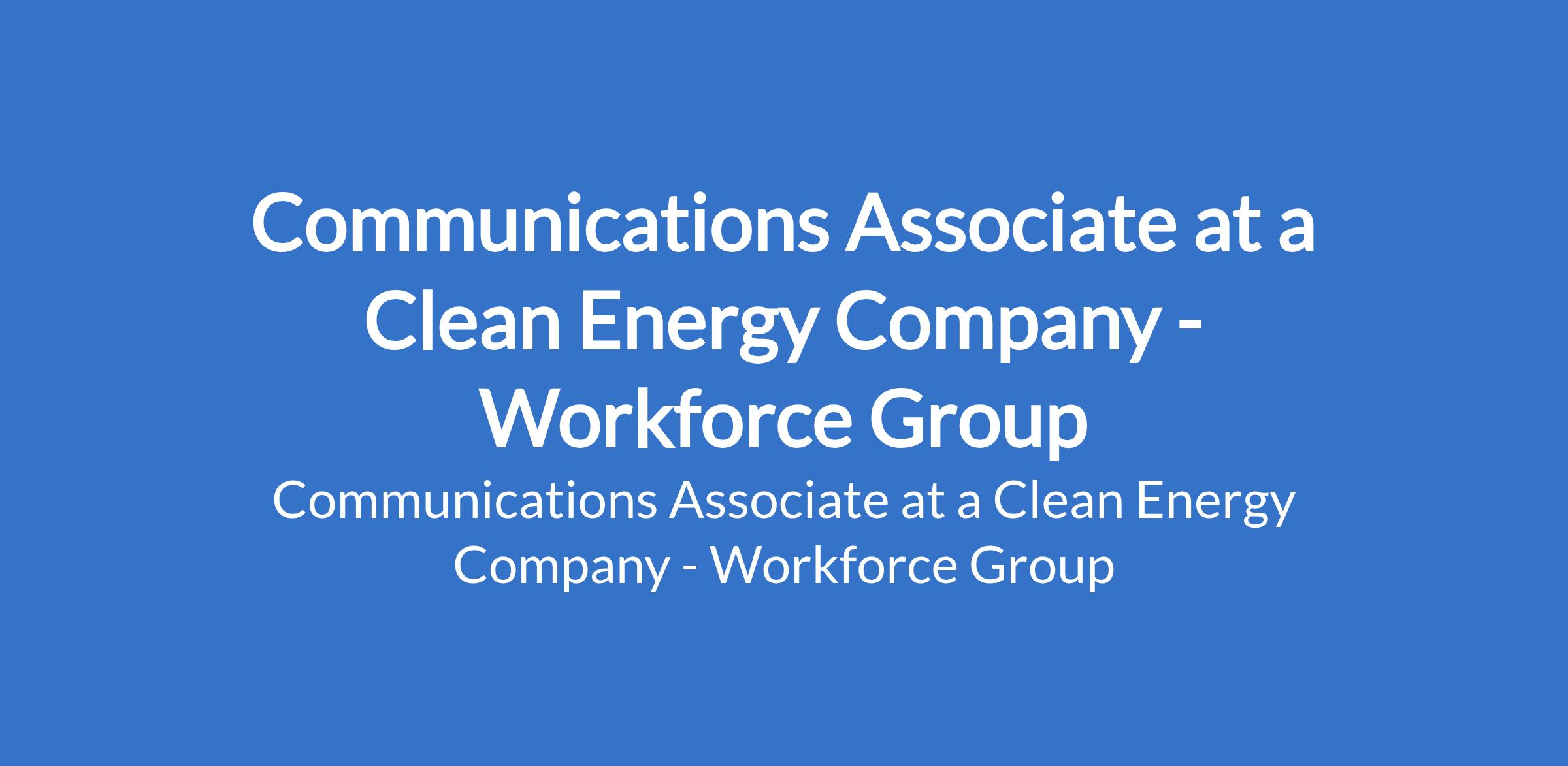 Workforce Group - Our client, a fast-growing, mission-driven Clean Energy company is recruiting to fill the position below:is recruiting to fill the position of: Communications Associate. The position is located in Abuja (FCT). Interested candidates should possess a Bachelor's Degree with 5+ years experience in communications, media, or digital marketing.