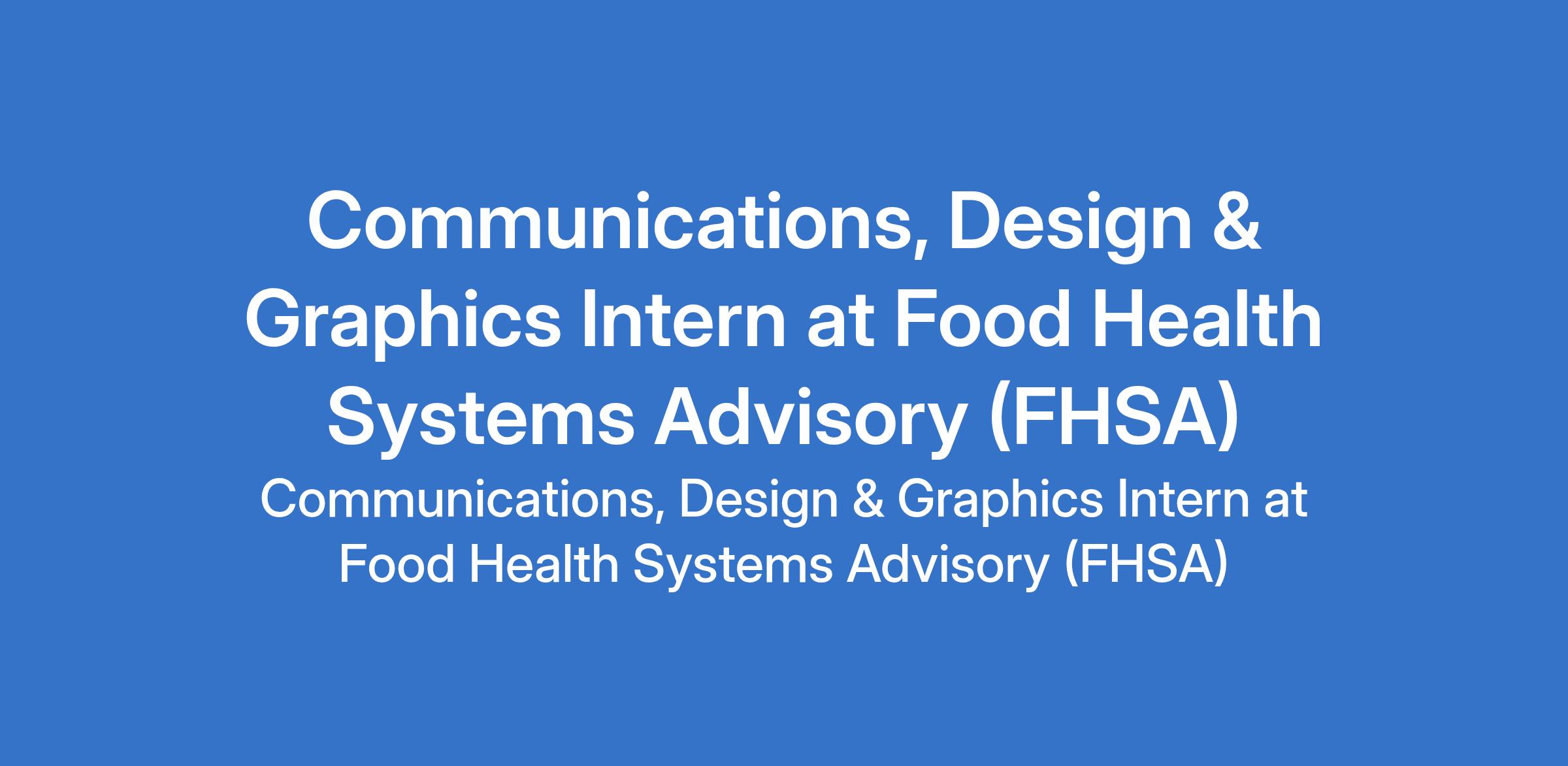 Food Health Systems Advisory (FHSA) is recruiting to fill the position of: Communications, Design & Graphics Intern. The position is located in Lagos State. Interested candidates should possess relevant background in Marketing, Communications, Media Studies, Graphic Design, or a related field
