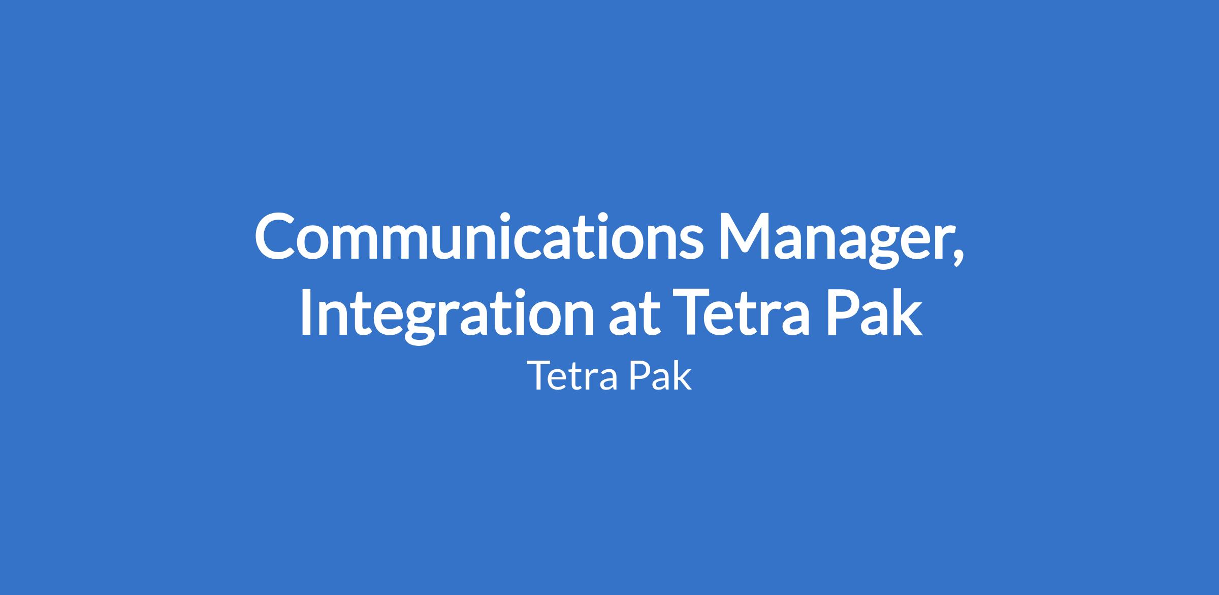 Communications Manager, Integration at Tetra Pak