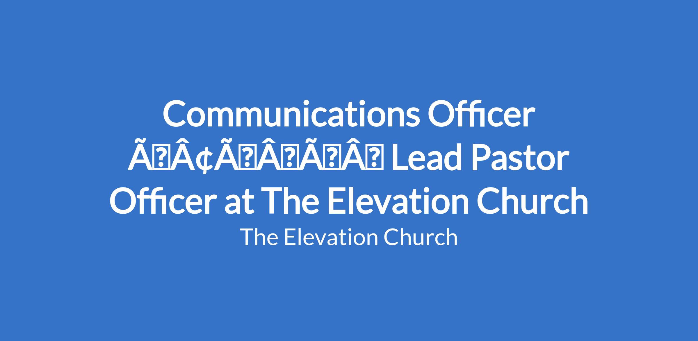 Communications Officer âÃÂàLead Pastor Officer at The Elevation Church
