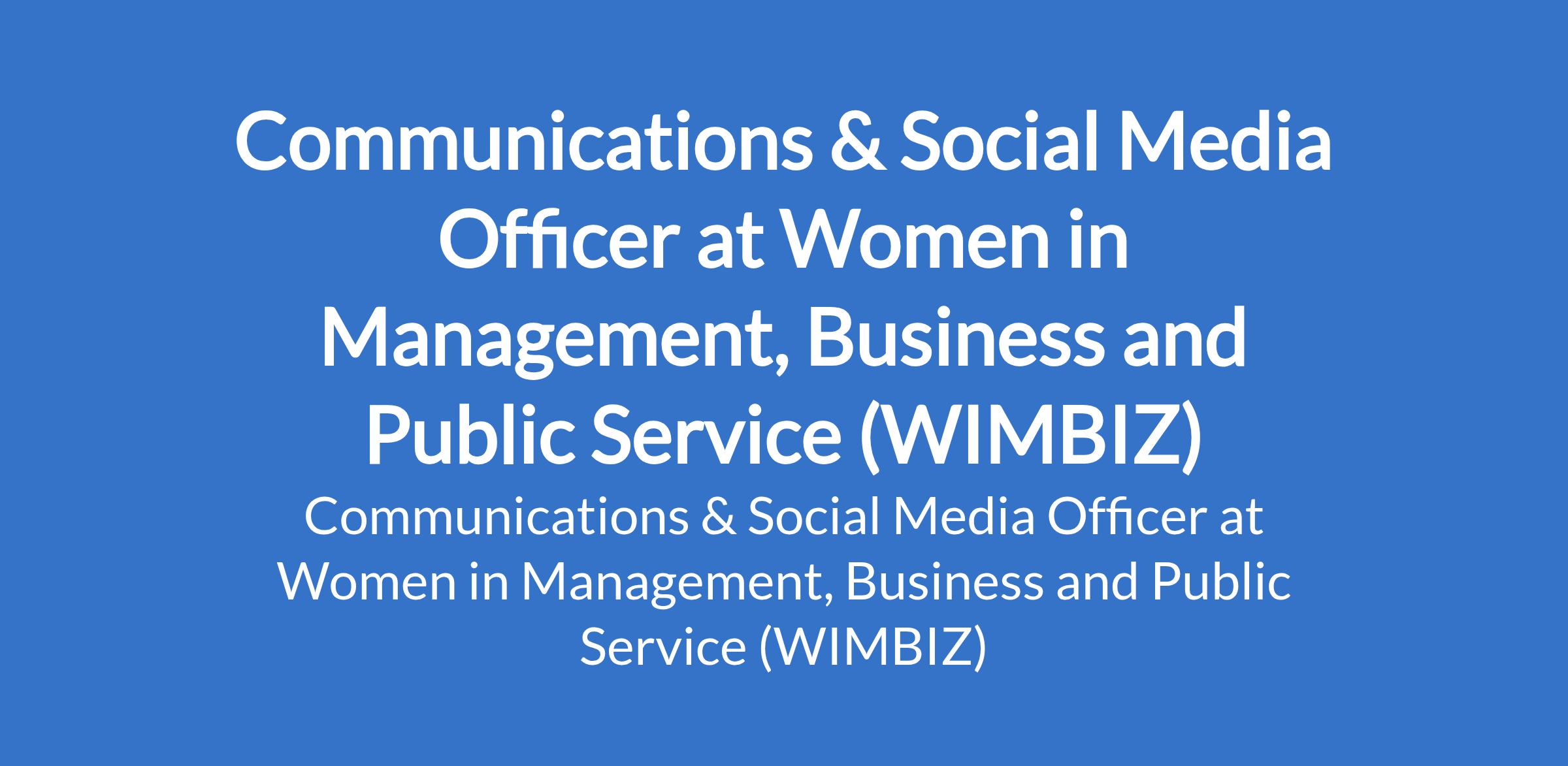 Women in Management, Business and Public Service (WIMBIZ) is recruiting to fill the position of: Communications & Social Media Officer. The position is located in Ikoyi, Lagos State. Interested candidates should possess a Bachelor's Degree in Communications, Marketing, Public Relations, or related fields with 3+ years of experience in communications, PR, or social media management; experience working within the nonprofit or membership-based sector is an advantage.