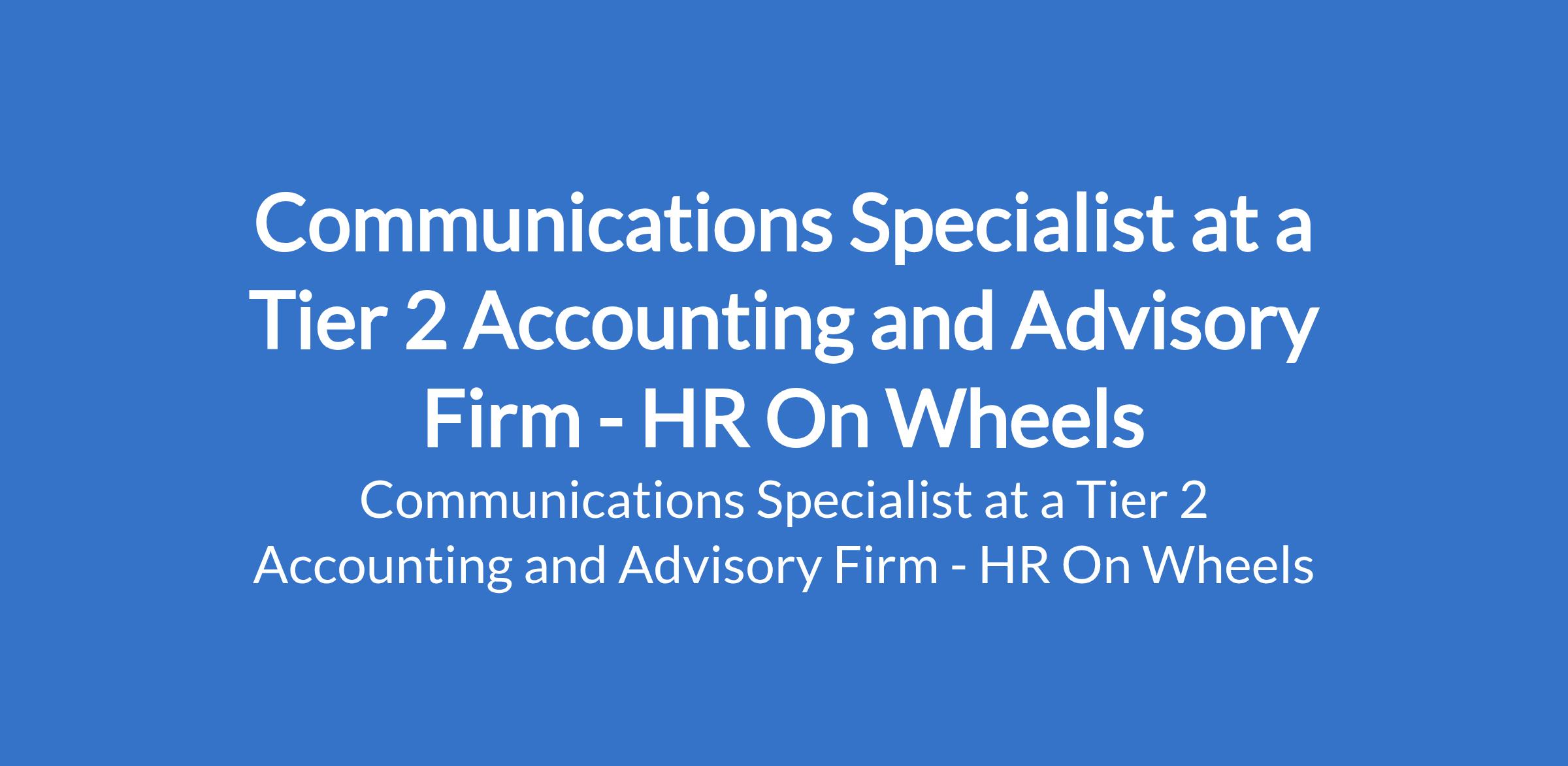 HR On Wheels - Our client, a Tier 2 Accounting and Advisory firm is recruiting to fill the position of: Communications Specialist. The position is located in Island, Lagos State. Salary: N500,000 N800,000 Monthly. Interested candidates should possess a Bachelors Degree in Communications, Journalism, Public Relations, Marketing, or a related field (Masters degree is an added advantage) with 3 5 years experience in a communications, PR, or media-related role.