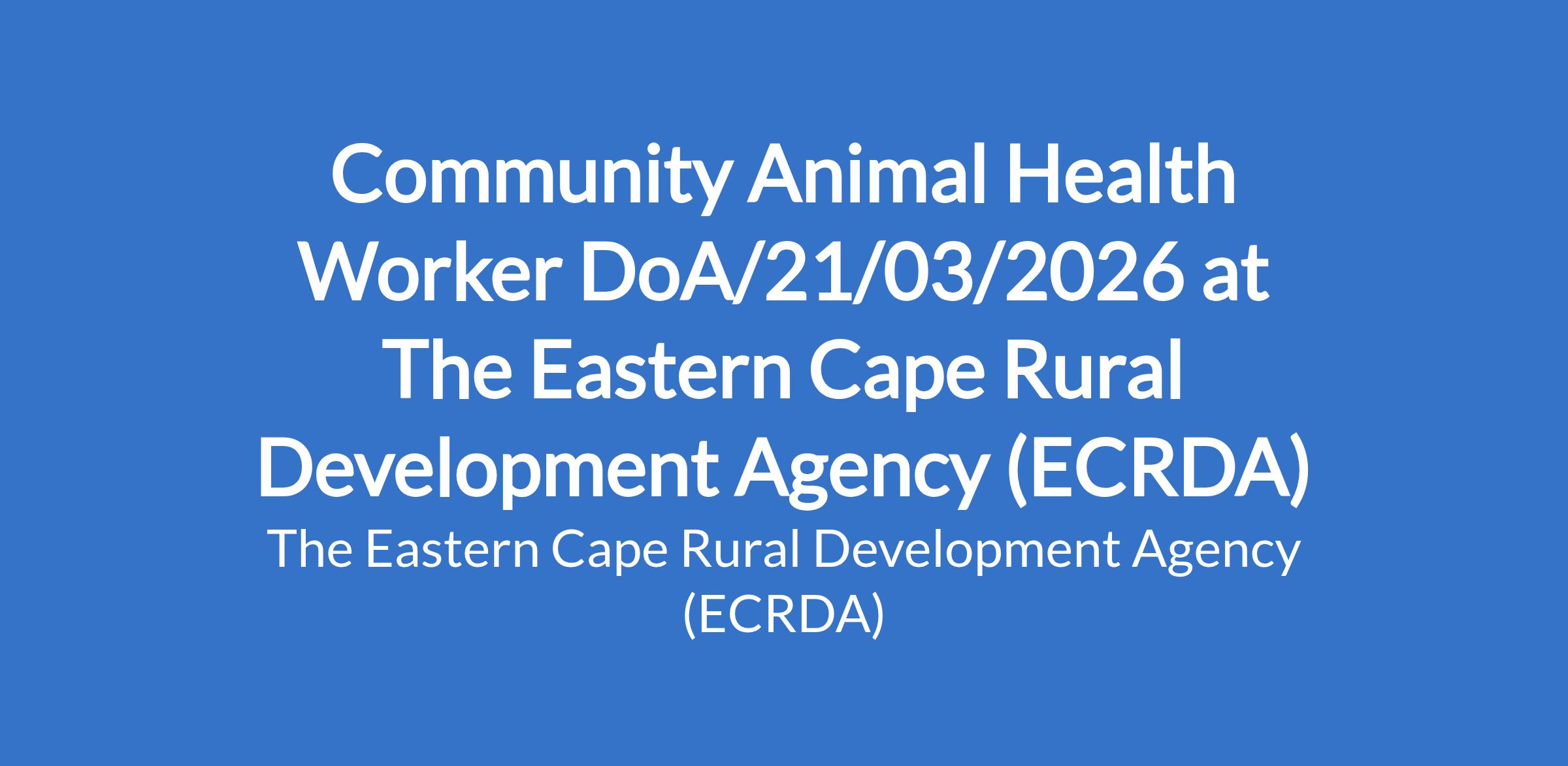 Community Animal Health Worker DoA/21/03/2026 at The Eastern Cape Rural Development Agency (ECRDA)