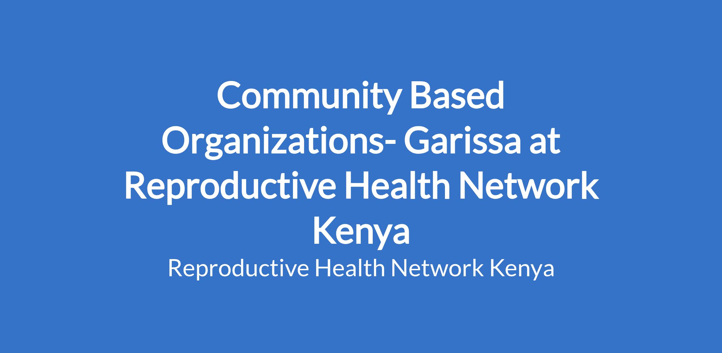 Community Based Organizations- Garissa at Reproductive Health Network Kenya